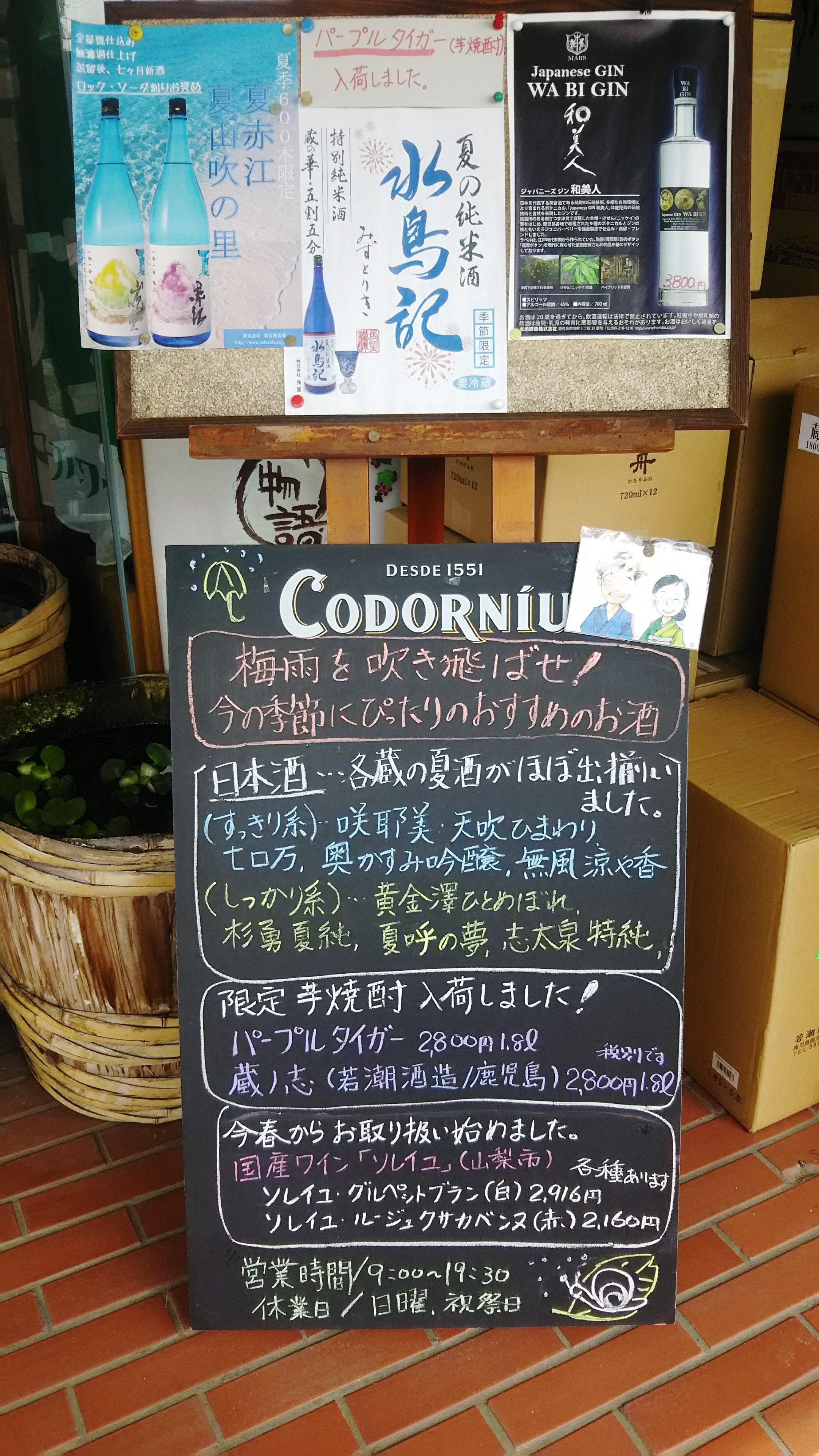 先週までは、今年の梅雨は一体どこに行ってしまったのだろう・・・と、思える様な好天に恵まれていましたが、一転今日は朝からジメジメとした梅雨空が帰って来てしまいました!そのような中、『父の日』に贈るお酒を買い求めるお客様にご来店頂いています。当日に間に合わなくても、受け取られるお父さんには十分気持ちが伝わると思いますので、過ぎちゃったから・・・とは思わずに是非。まだまだ間に合いますよ(笑)