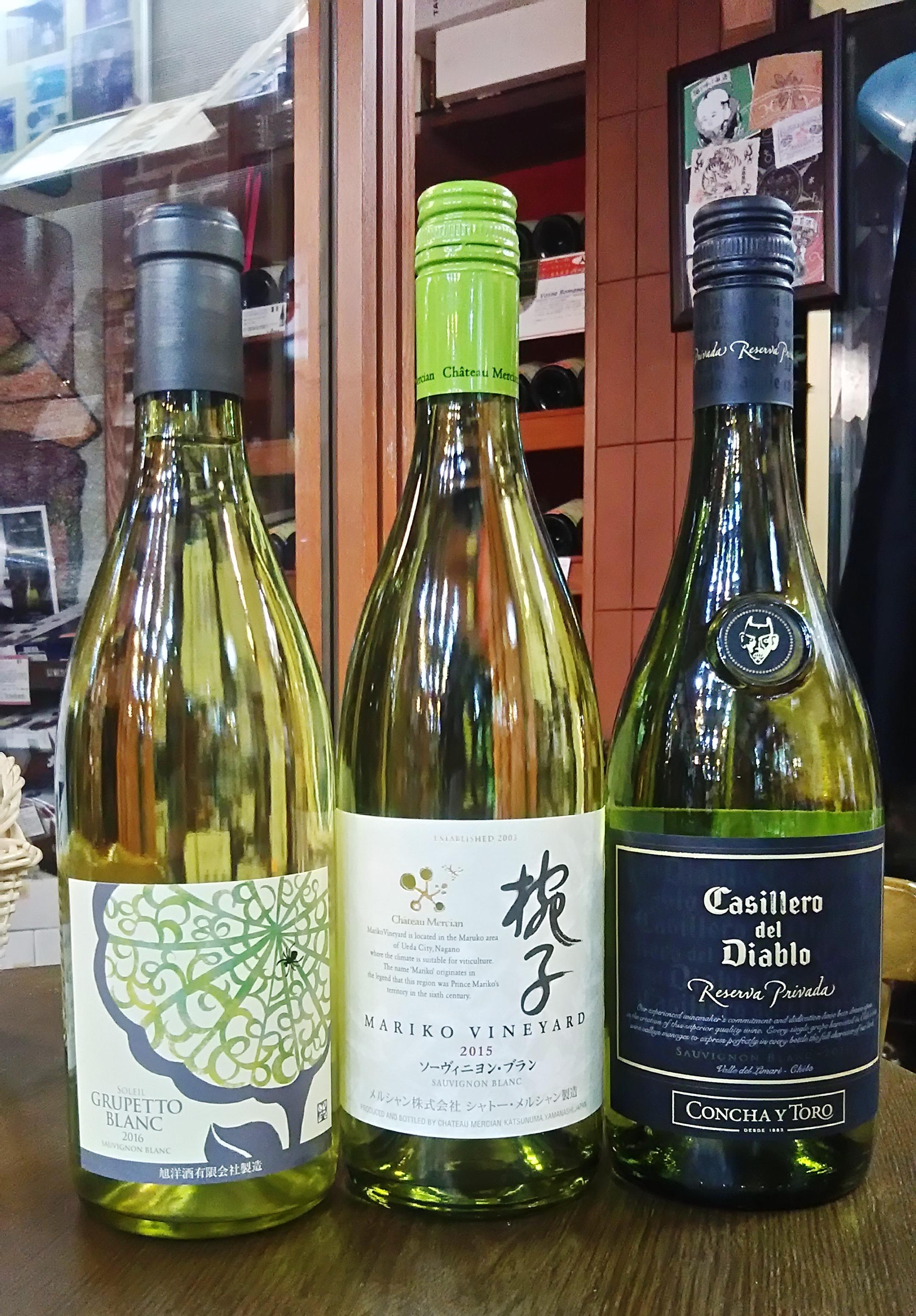 このブドウを使ったワインは、フランスのボルドーやカリフォルニア、南米のチリなどが有名ですが、ここ日本でも最近になって見かけることが多くなってきました。現在、店内にて国産ワインのコーナーを作り、白ワインを中心に並べた所、普段は日本酒や焼酎、ウイスキーなどを買っている方の中にも、実はワインが好きで、ワインの話に花が咲く時があります。その中でも『ソーヴィニヨン・ブラン』で造ったワインが好きなんですよ~、と言われる方が地味に多く、日本人の好みに合う香りと味わいなのだと改めて感じます。