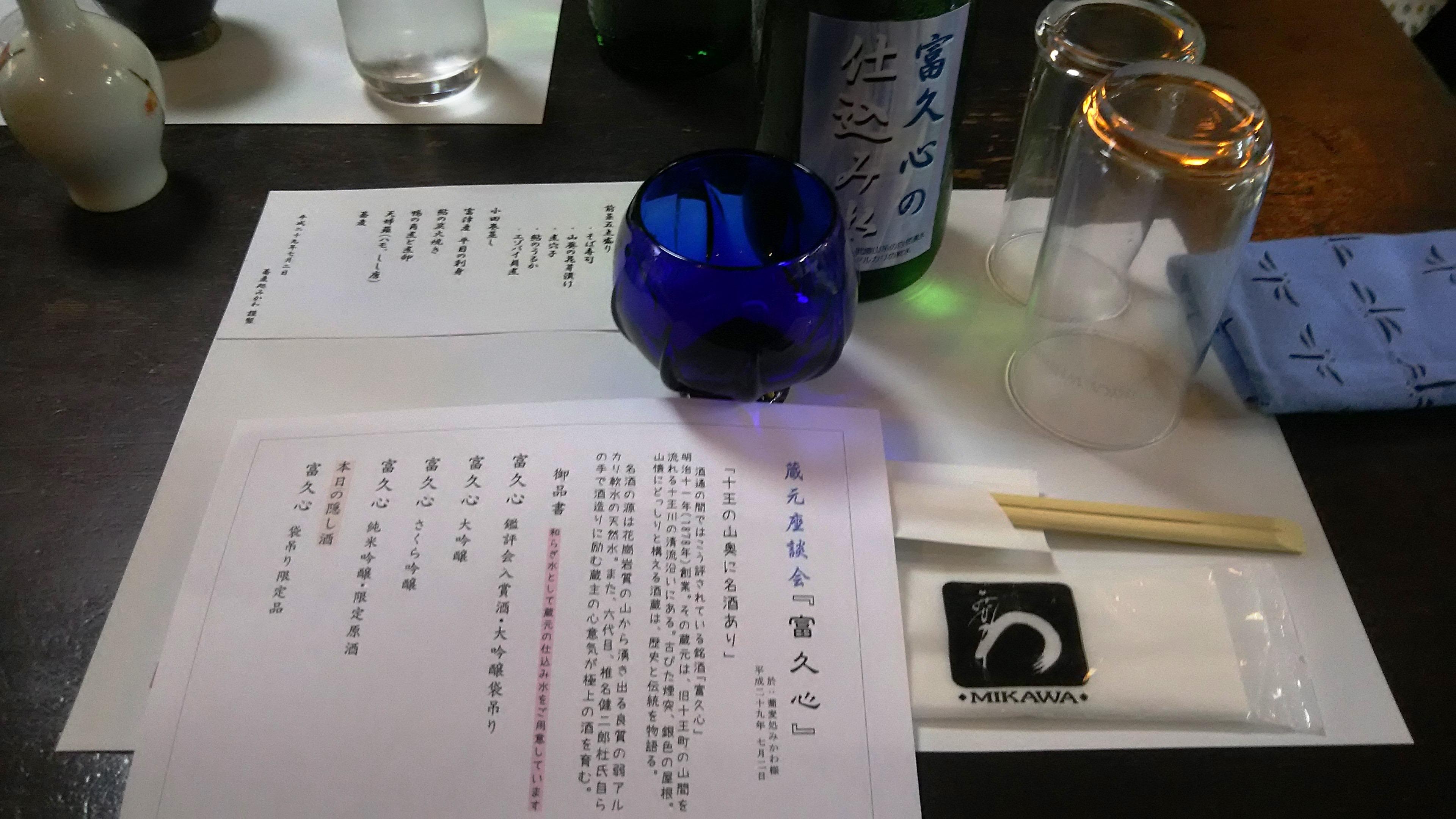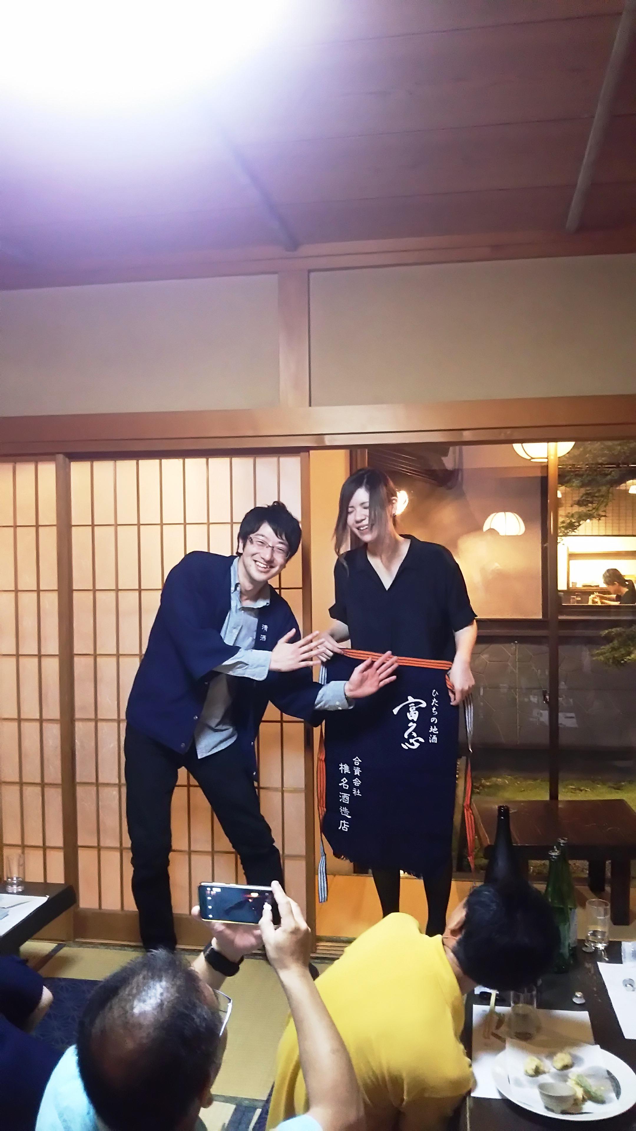 最後に〆の蕎麦を頂きながら、恒例のじゃんけん大会では、なんと初参加の方が富久心の『前掛け』をゲットし、ビギナーズラックに大いに盛り上がりました。富久心の神髄を味わい尽くした素晴らしい蔵元座談会となりました!最後になりましたが、長い時間お付き合いいただいた椎名健次郎さんとみかわ様には、この場を借りて感謝申し上げたいと思います。次回は、夏の恒例イベント『酒と音楽と和装の会』を、8月20日の夕方5時から、水戸のライブハウス『ペーパームーン』様にて開催いたしますので、皆様お気軽にご参加ください!