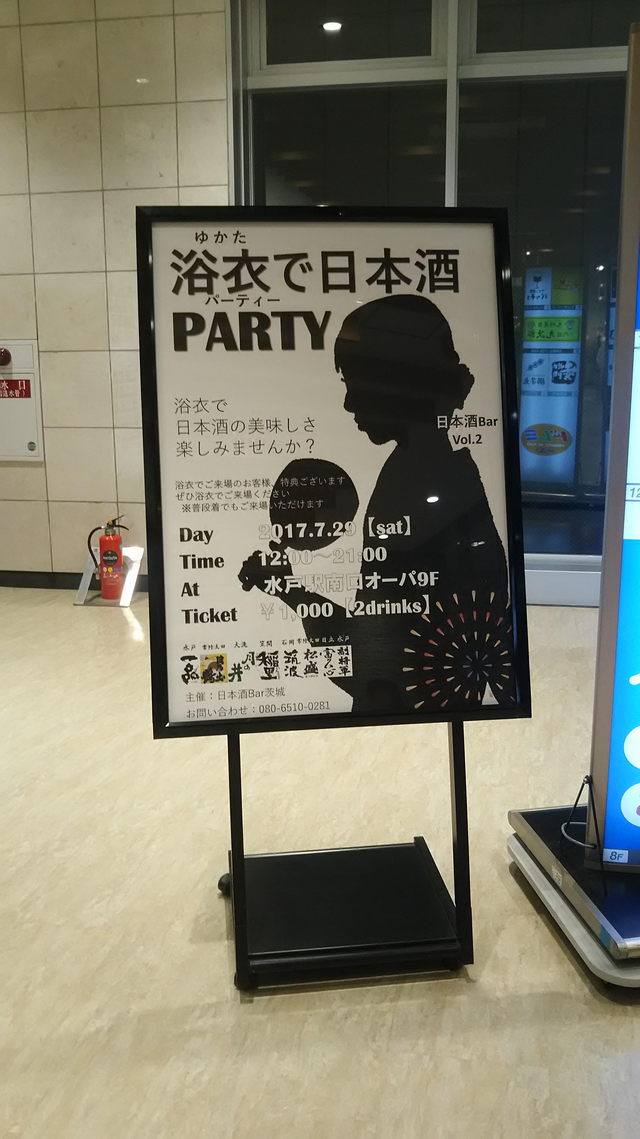 夏祭りの季節を迎え、各地では花火大会や音楽イベントなど様々な催しものが開催されている中、昨日は水戸の駅ビル『オーパ』で日本酒のイベントが行われると言うことで、店を閉めてからみどりさんと連れ立って出かけてきました!さすが!週末土曜日の夜という事で、駅前は沢山の人で賑わっていました。