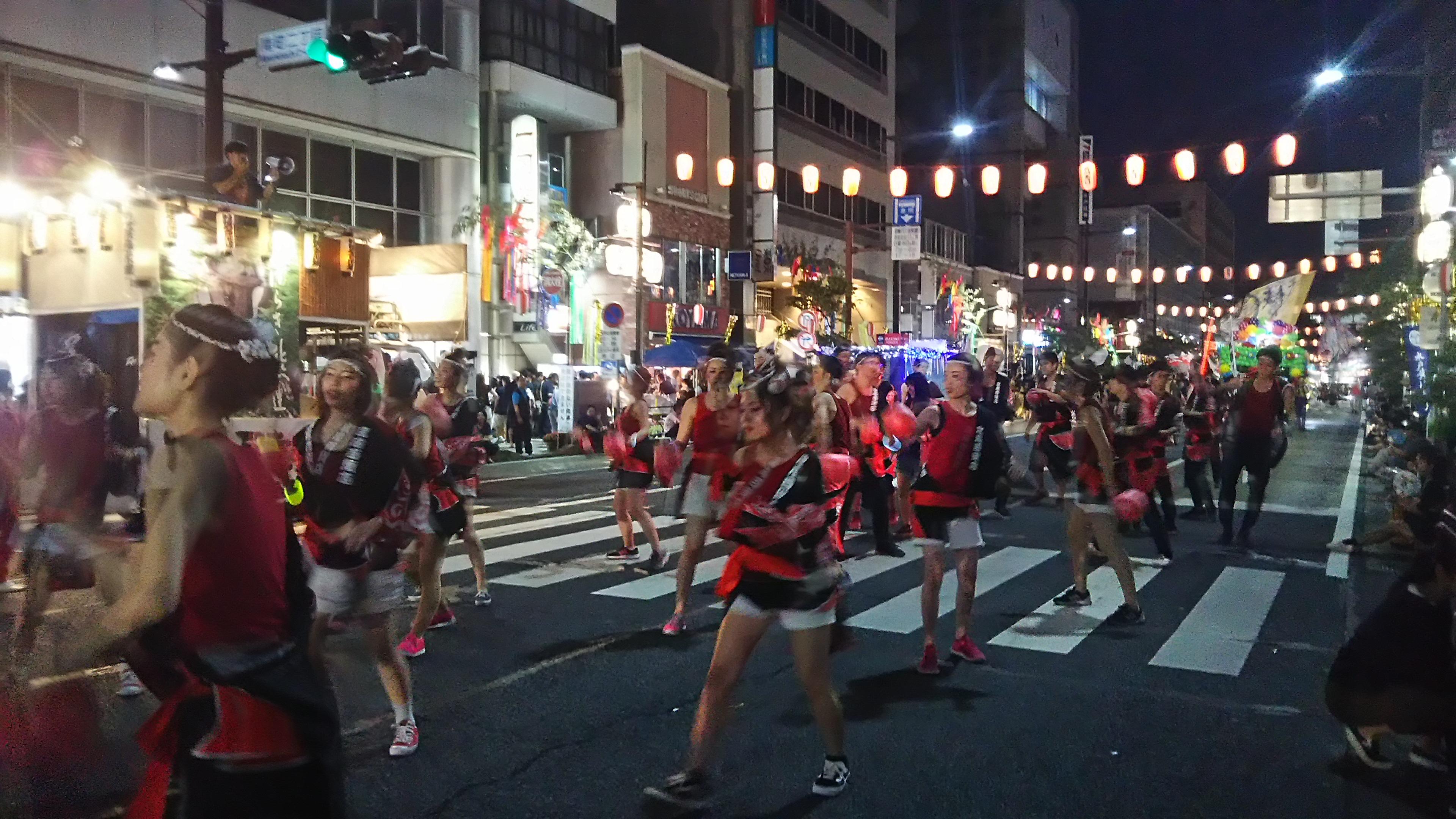 日頃は閑散と静まり返った水戸のメインストリートが、たくさんの踊り子さんや山車が繰り出していて、歩道にも溢れんばかりの見物客でごった返ししていました。一瞬、ここはディズニーランドなのか?と錯覚するようなエレクトリカルパレードさながらの賑わいに、こちらも自然と気持ちが高揚してしまいました(笑)