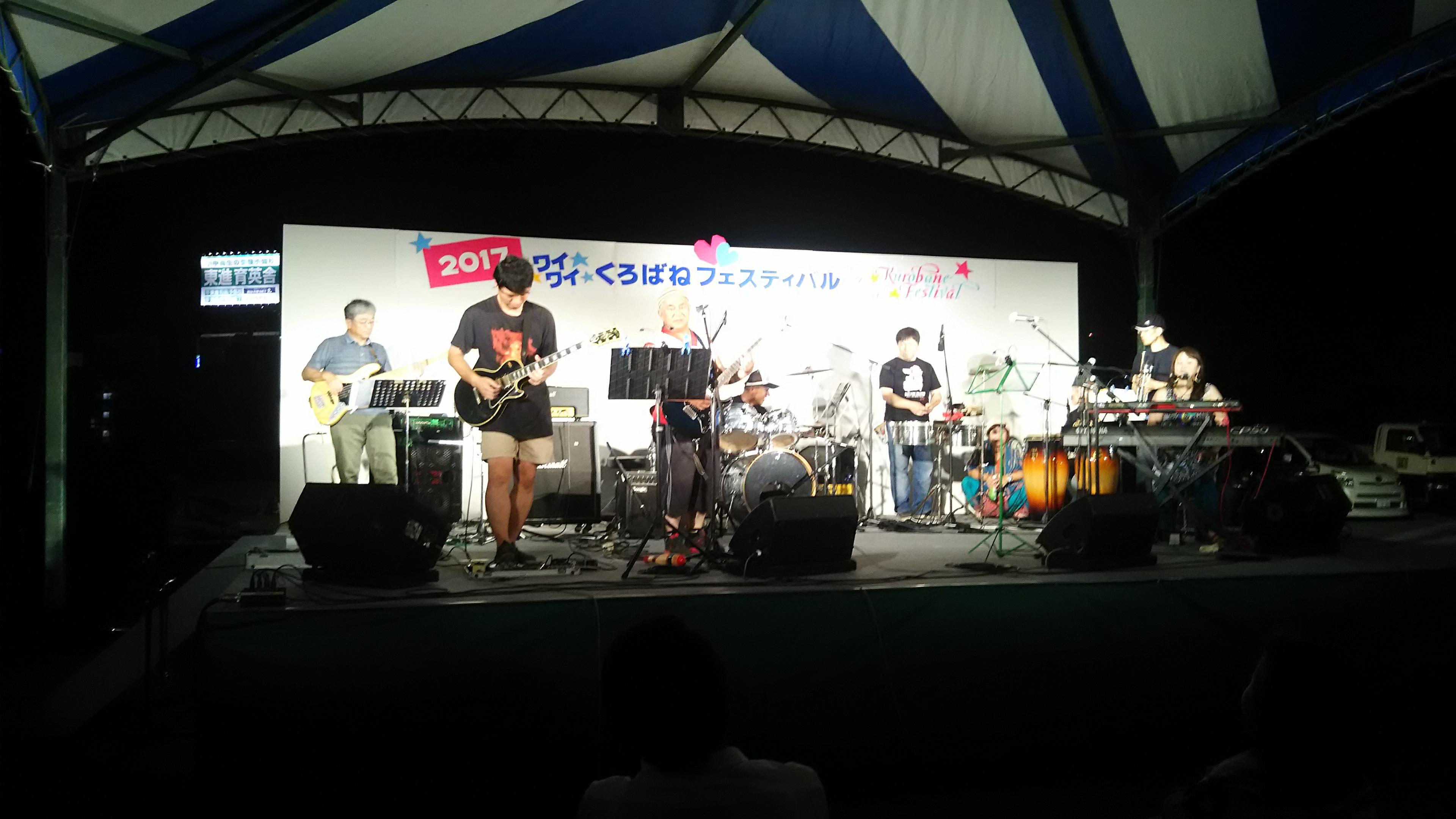 続いて向かったのは、表通りから少し離れた『ワイワイくろばねフェスティバル2017』の会場です。音楽ステージを取り囲むように様々な屋台があるので、ここだけでも十分にお祭り気分を味わうことができます!ちょうどステージ上では、超実力派!!のファンキーロックバンド『トレイン』さんの演奏が行われていて、皆さんノリノリで楽しんでいました(笑)