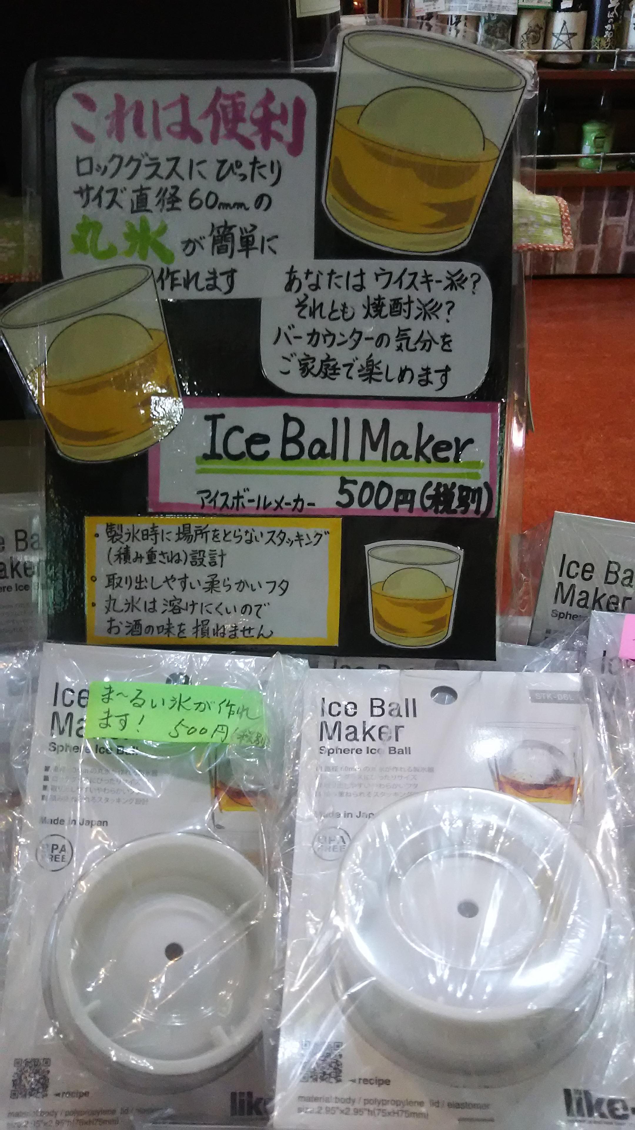 先日、自宅で簡単に『丸氷』が作れる便利グッズ『アイスボールメーカー』をご紹介したところ、ご来店いただいたお客様からは『こういうものを探していたんだよ~!』と喜んでいただいております。正直、それほど多くの方から需要があるとは思っていなかったので、焼酎やウイスキーの好きな方を見かけては、とっても便利なものが登場したんですよ~と、お声をかけておりました。予想以上の好反応にビックリすると同時に、とても嬉しい気持ちになっています!