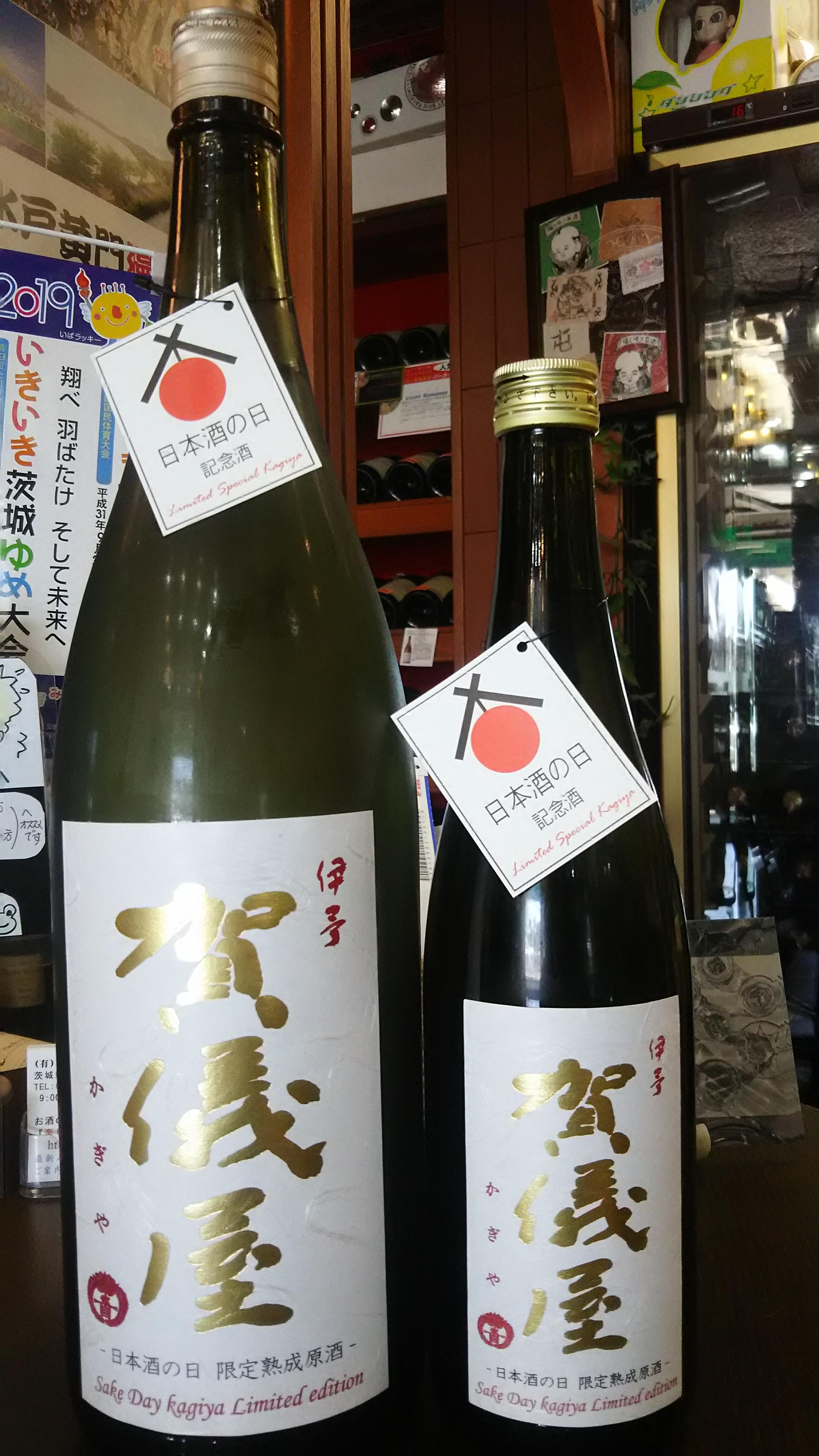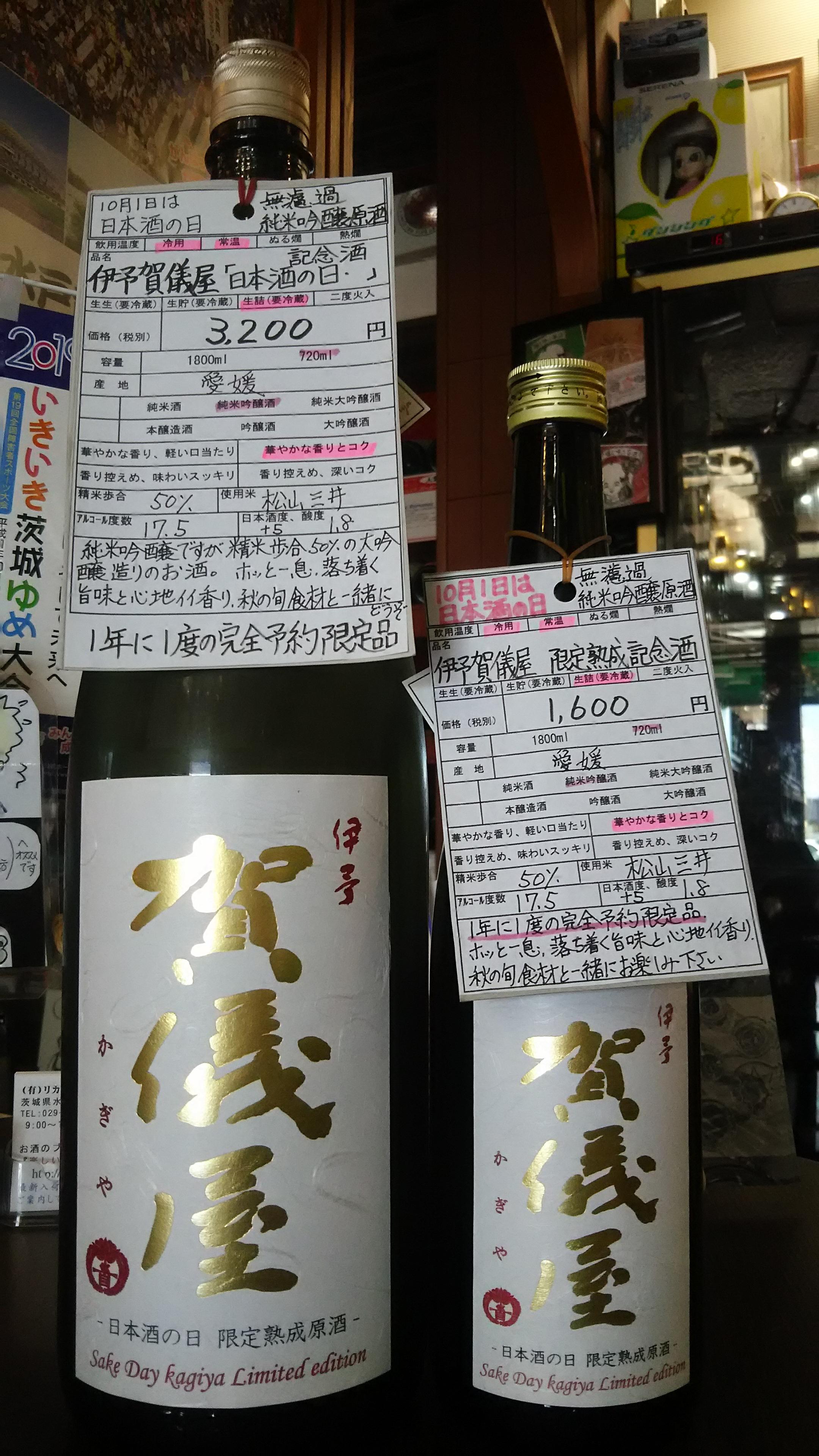 そのような中、愛媛県の成龍酒造さんから『日本酒の日』を祝した『日本酒の日、記念酒』が登場しました。多くの方に日本酒の美味しさや魅力を感じていただきたいという願いを込めて造った記念酒『伊予賀儀屋・熟成純米吟醸原酒』、瓶の首の所には、『日本酒の日、記念酒』の札が下げられています。一年に一度のこの日のために造った完全予約限定品で、穏やかな香りの奥にしっかりとしたコクと旨味を持ち合わせた蔵元の自信作です。