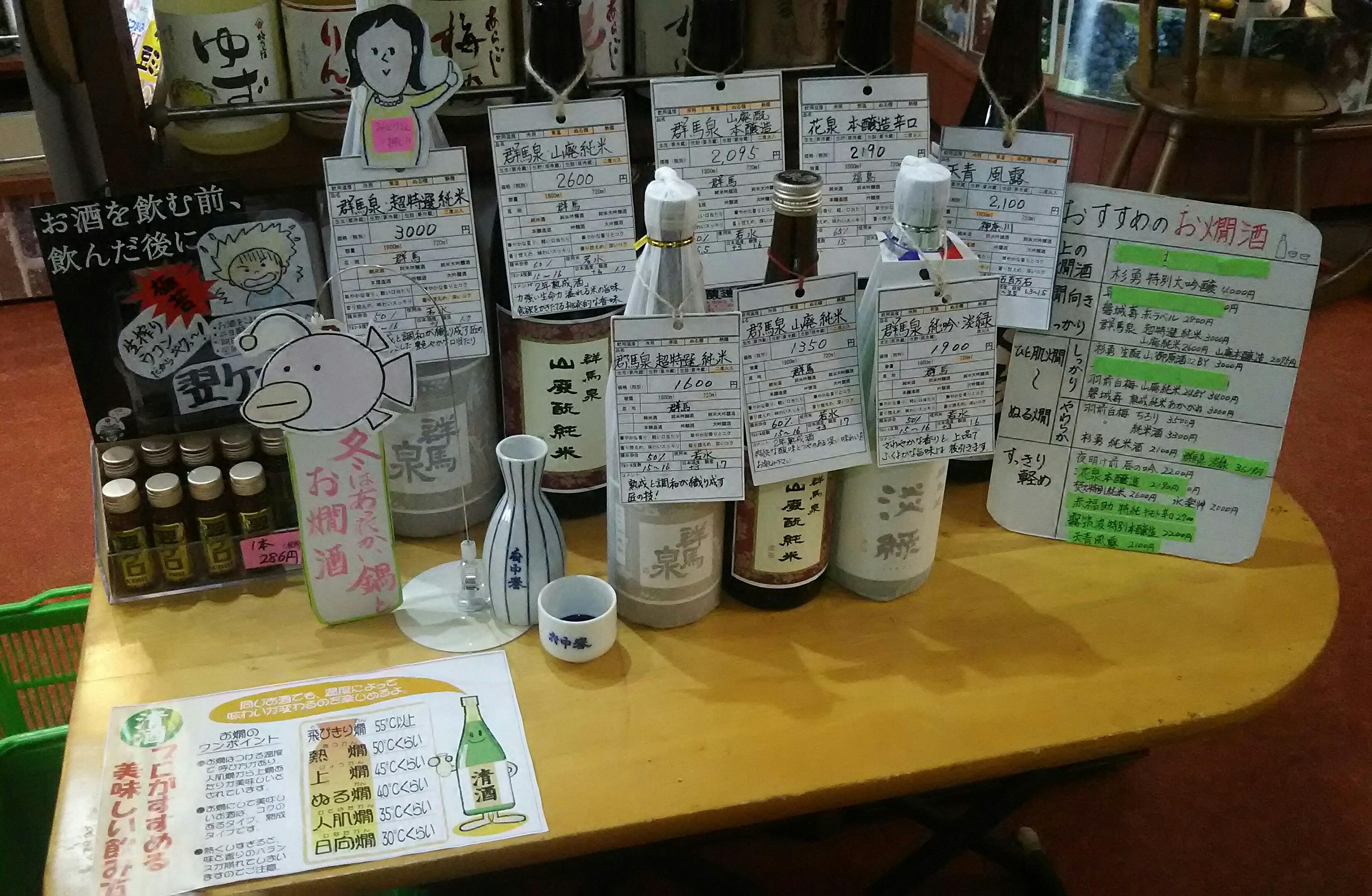 『お燗酒コーナー』の第一弾は、群馬県の『群馬泉』に注目して飾りつけしましたが、今後は様々な蔵元様のお燗酒をご紹介していきたいと思いますので、楽しみにしてください!