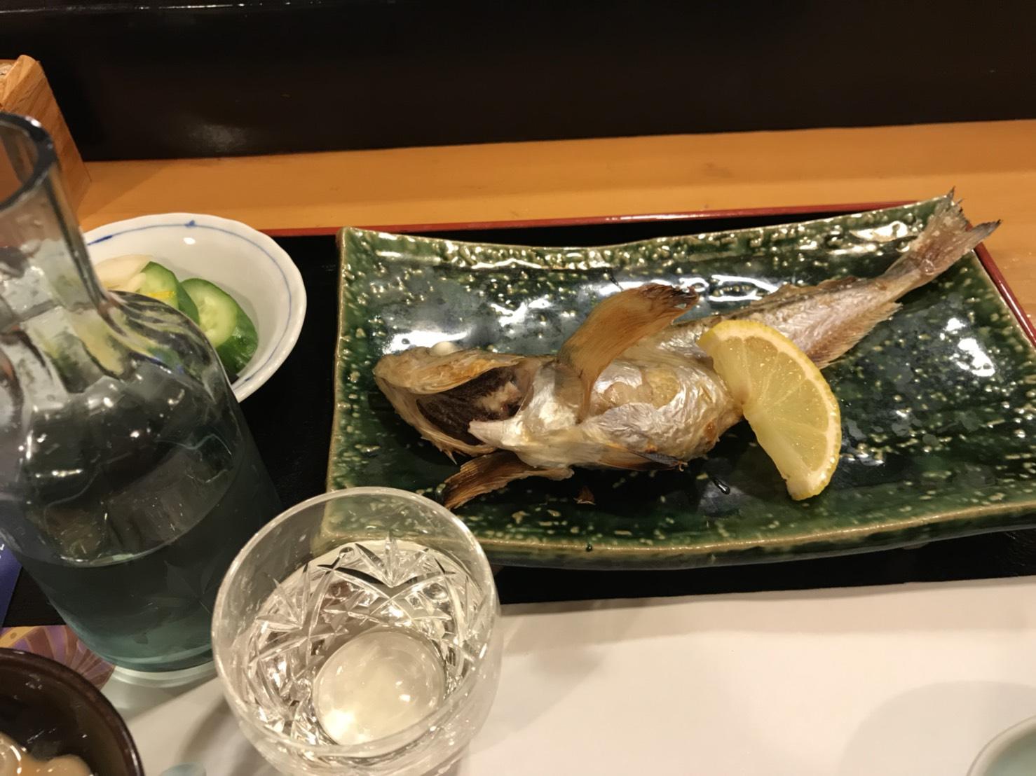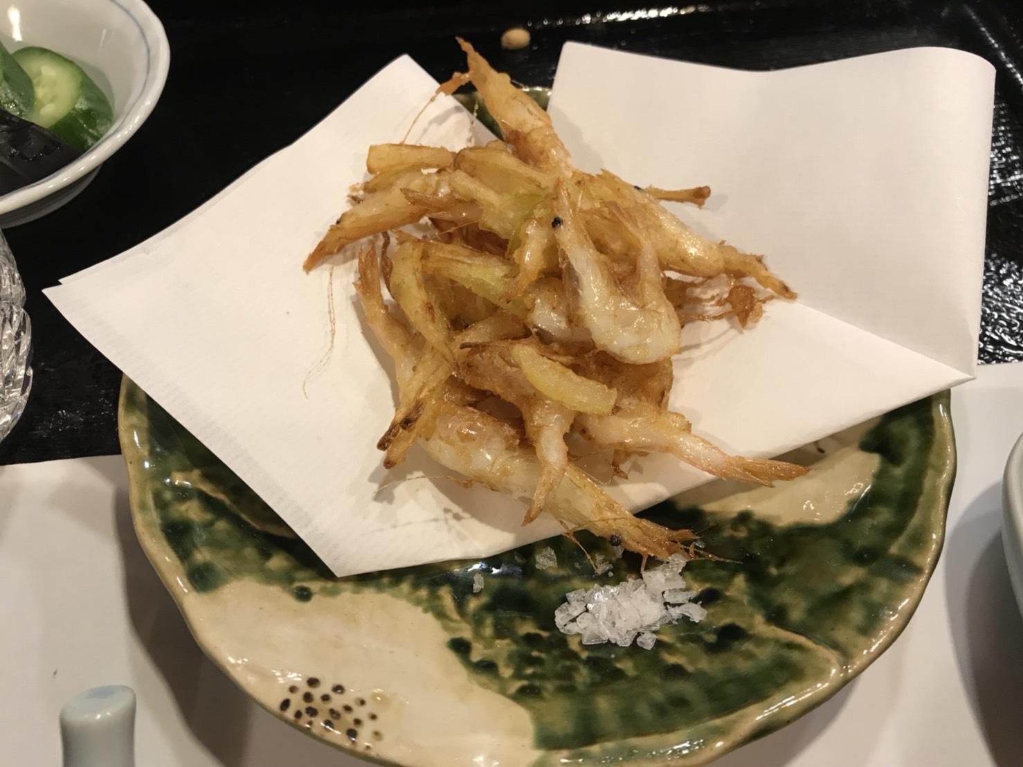 その後も、今が旬の『子持ちハタハタの塩焼き』や『自家製の塩辛』に、富山産の『白エビのかき揚げ』等、酒が進んでしまって困るものばかりです(笑)〆には、こはだを使った特製の細巻きとお椀をいただきました。孝之さんは、最後に握り寿司も完食してました!さすが、若いですね~。親方からは大工町に関する街の歴史を伺うこともできて、身も心も大満足のひと時を過ごすことができました。