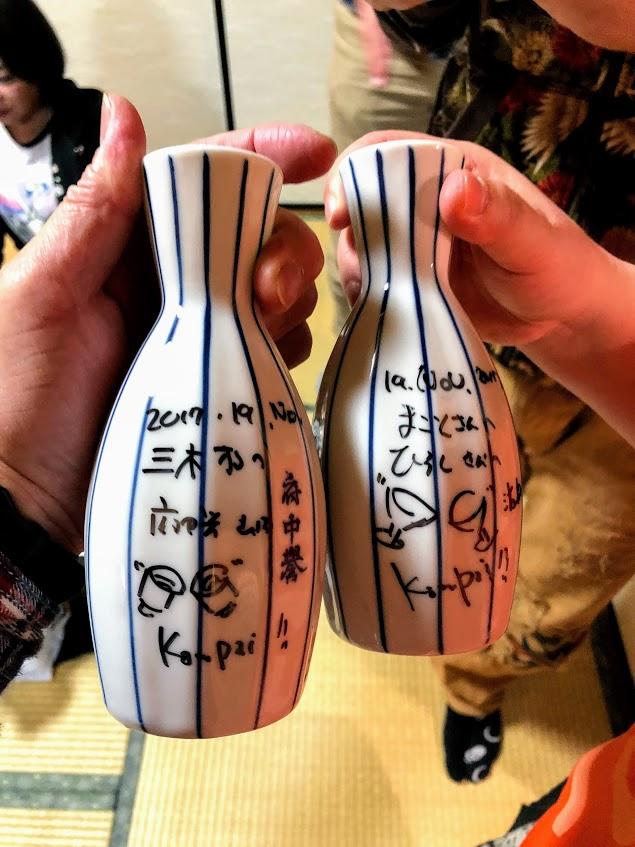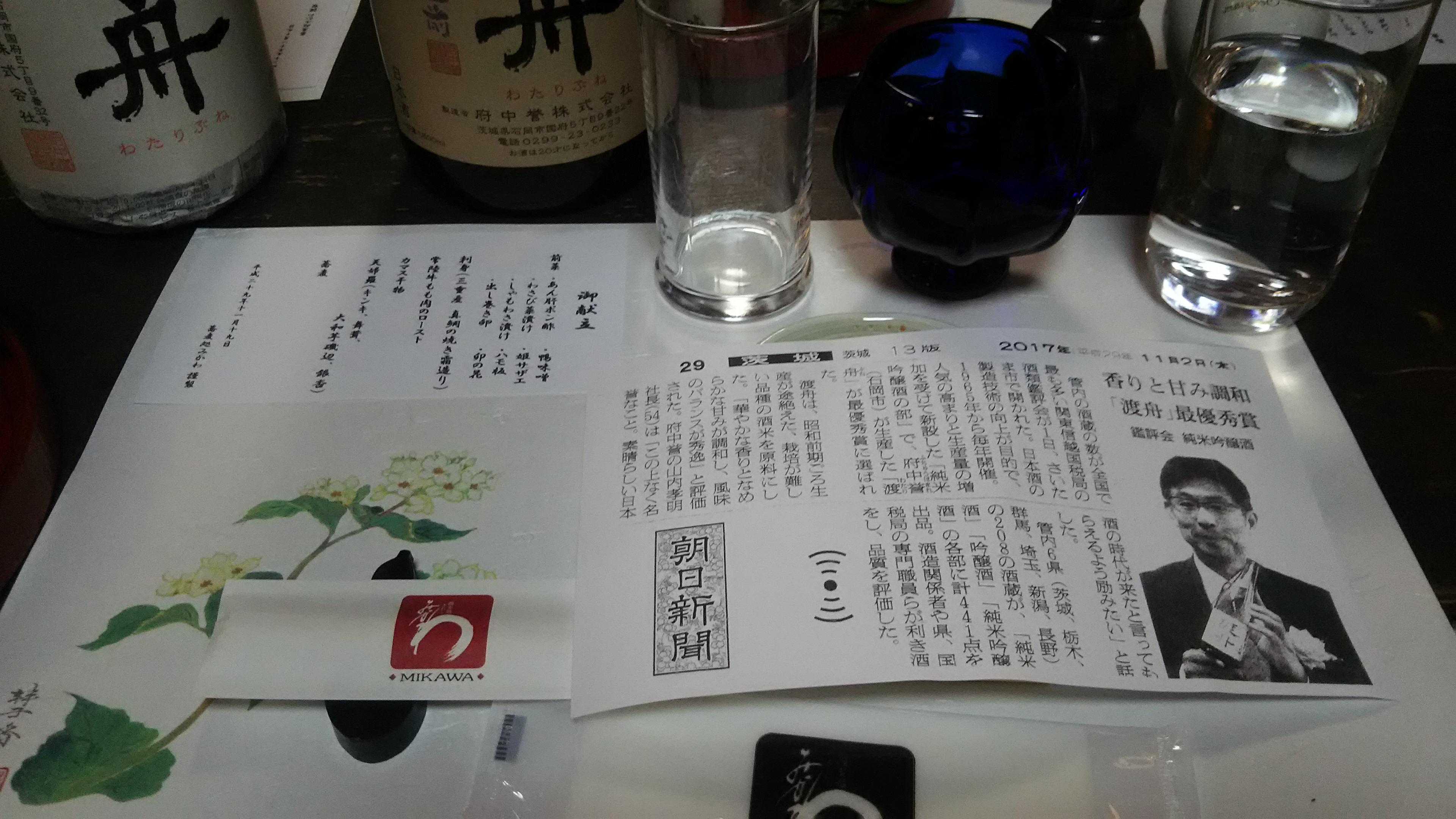 そして最後は『大抽選会』、今回は、焼酎発売10周年にかけて、30年前の二合徳利と平盃を10セット、ご用意しました。飲んで食べて、喋って、笑って、渡舟を味わい尽くした、素晴らしい蔵元座談会となりました。最後になりましたが、風邪気味の中ご参加いただいた山内社長と、素晴らしい料理を出していただいた蕎麦処みかわ様に、感謝申し上げます。