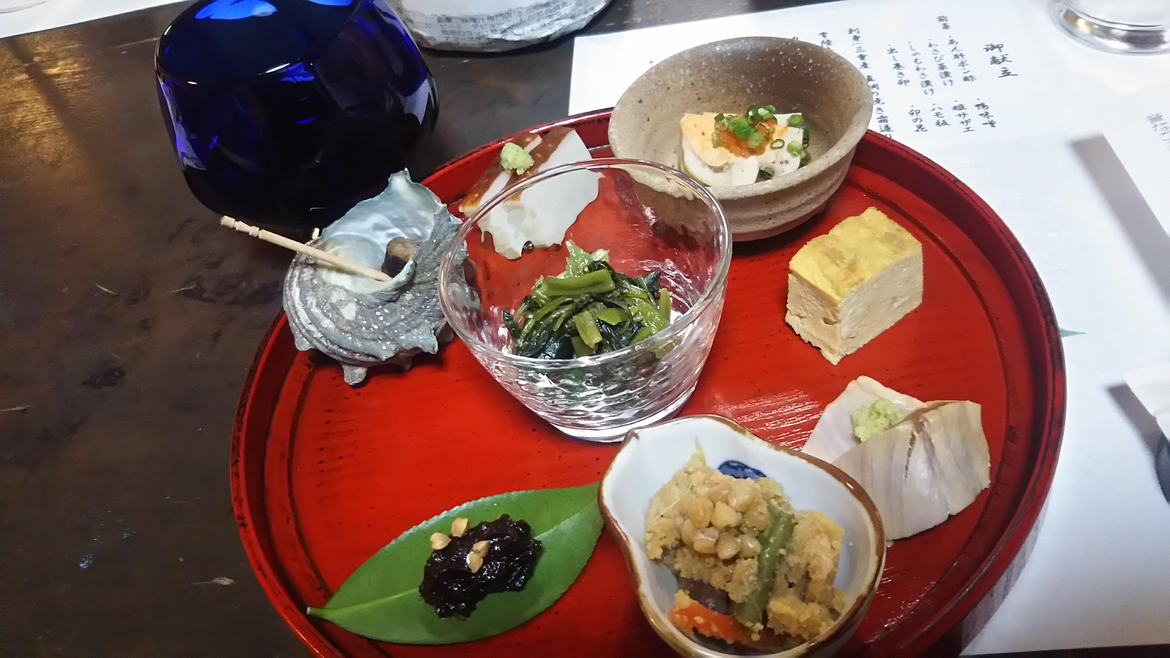 この日の前菜は、日本酒好きにはたまらない、手の込んだ8種類が盛り込まれていたので、お酒と料理との相性を試すには絶好の機会です。渡舟の最高峰を味わった後は、渡舟らしさを一番感じることができる『純米吟醸・55』を料理とともに味わいました。リンゴの蜜を思わせる酸味と柔らかな甘みが口の中一杯に広がって、思わず、これ!美味しいね~!といった声が、あちこちから聞こえてきました。
