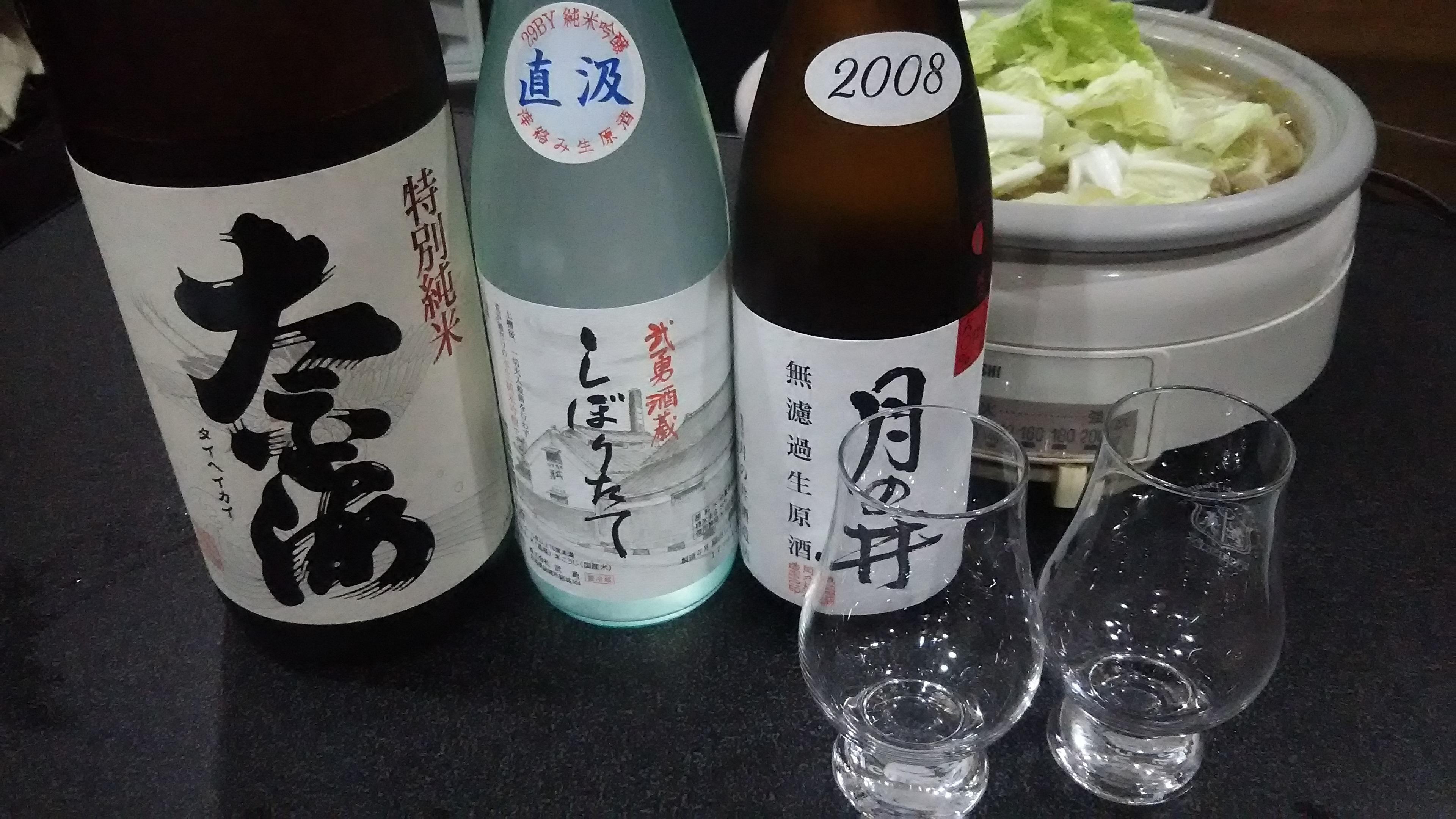 新酒だけでは物足りないので、同じ茨城県の蔵元の二銘柄を合わせていただくことにしました!酒に合わる料理は、木名瀬家の冬の定番『鍋』です。今回はしょうゆ味からスタートです。まずは、『武勇』から頂きます。プチプチとしたガスを含んだ軽やかな舌触りと、爽やかな果実の香りが感じられます。飲み口は、とてもすっきりとしていて、新酒ならでは、渋みと苦みが若干感じられましたが、徐々に甘みが広がって今後の期待がもてる仕上がりです!