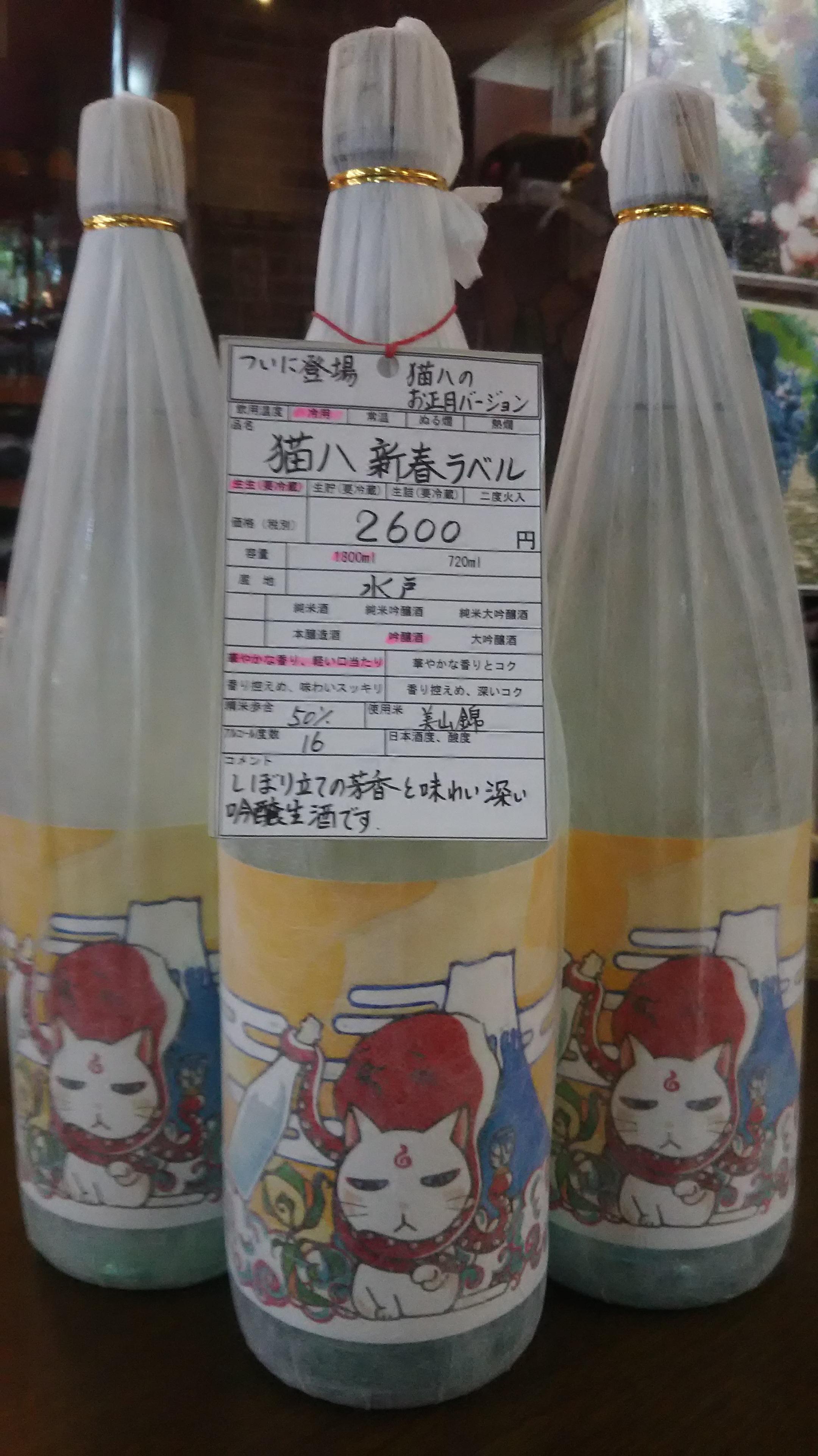 昨年に引き続き、今年も『猫八・新春ラベル』が入荷して参りました。この酒が入荷してくると、一気に店内が華やぐとともに、いよいよ年の瀬が近づいてきたんだなぁ~、と感慨深くなります。