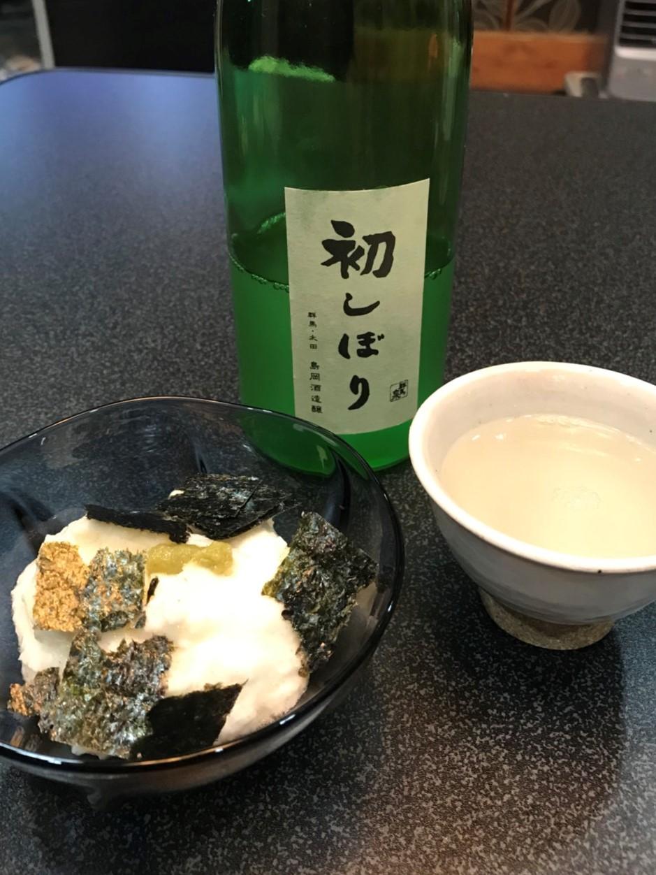 でも、実際に届いた商品を見てみると、いやいやどうして、滓もしっかりと入っており、昨年よりも多いんじゃないかと思うほどです。今回は、群馬県産の大和芋を酒の肴に今年の初しぼりを味わってみました。因みに、大和芋の擦り具合の好みは、みどりさんはトロトロ派で、私は歯ごたえが残る粗びき派で、刻みのりとわさびにめんつゆをかけて頂きます。