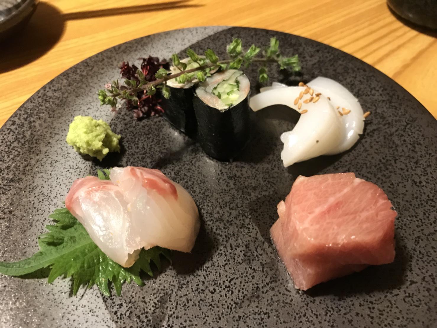 その後、激混みのショッピングモールを後にし、『緑鮨』さんへ伺いました。私たちの誕生日を祝うかのように、テーブルの上には大きな土鍋が・・・、鮮度抜群の『ブリ』をしゃぶしゃぶで頂きました。他にも、刺身の盛り合わせや天ぷら、煮物、等、お腹いっぱいになるまで堪能しました。お酒は、サッパリと『岩井トラディッション』をちょい濃いめの水割りで頂きました。
