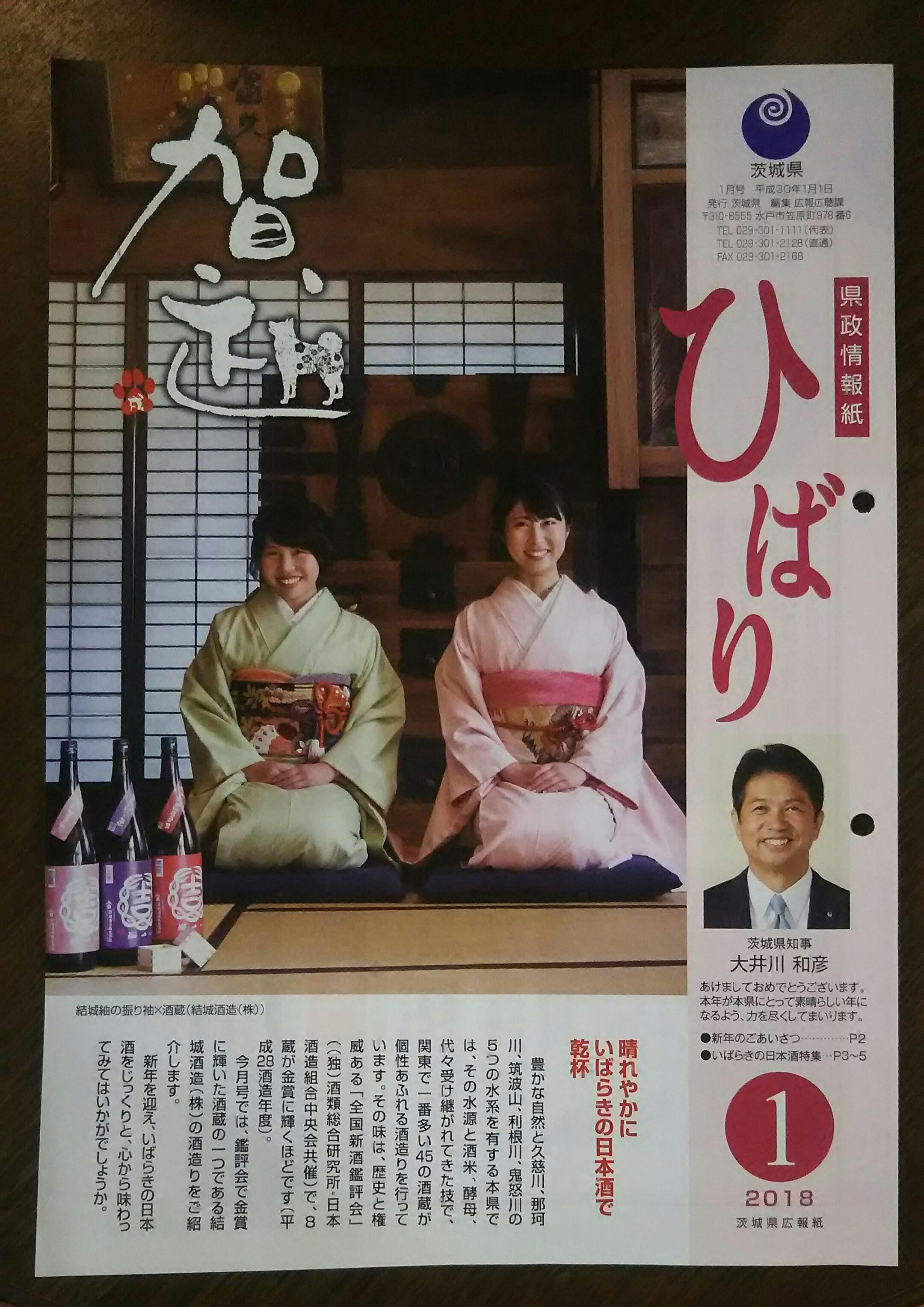 茨城県民のみなさんは、茨城県の県政情報誌『ひばり』新年号をご覧になられたでしょうか?新年号は、茨城の日本酒特集でした。当店でもお取引させていただいております結城市の結城酒造さんが表紙を飾っています。茨城県の大井川新知事も茨城を代表する織物・結城紬を着て新年のご挨拶をされています。