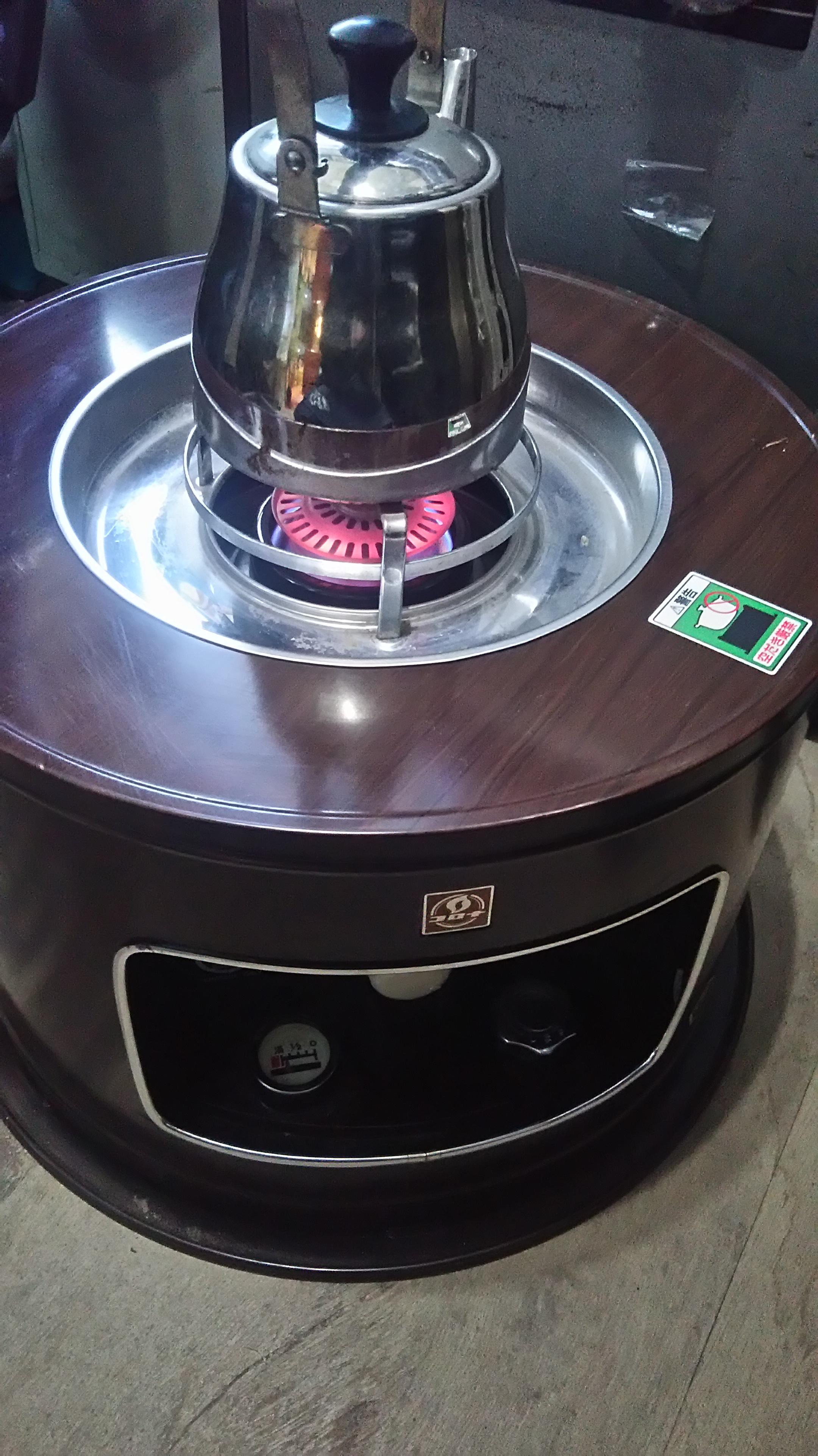 今までは、小さなファンヒーター一つで事務所と店内の暖房をまかなっていましたが、あまりの寒さに耐えかね、石油ストーブを事務所内におくことにしました。事務所の中はとても狭いので、暖もとれて鍋ものせられる一石二鳥の囲炉裏スタイルのストーブです。