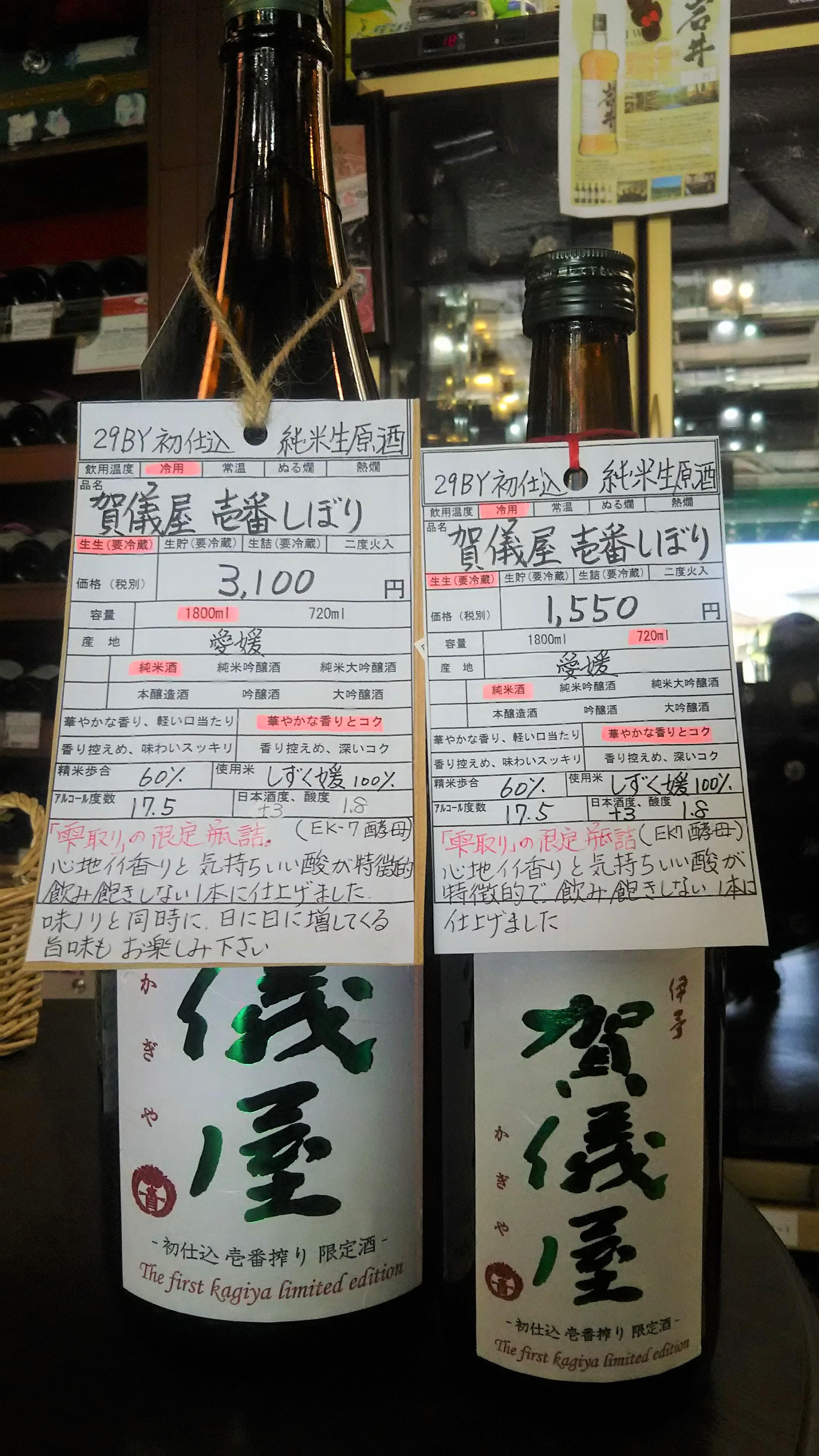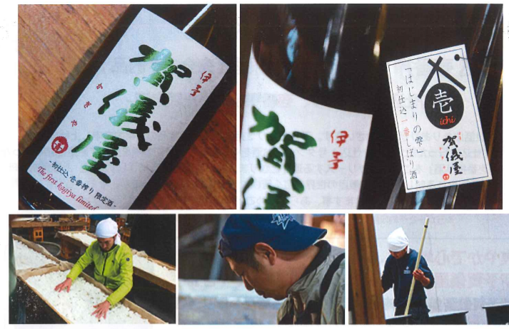 そんな蔵元が目指す今年の酒は『心地いい香りと気持ちのいい酸、味ノリが楽しみな酒質』です。今回の『壱番しぼり』も新酒ならではの爽やかで心地よい香りとお米の旨味が上品な酸味とともにバランス良くまとまった味わいとなっています。今年の『伊予賀儀屋』はまだ始まったばかりです。今年もよろしくお願いいたします。
