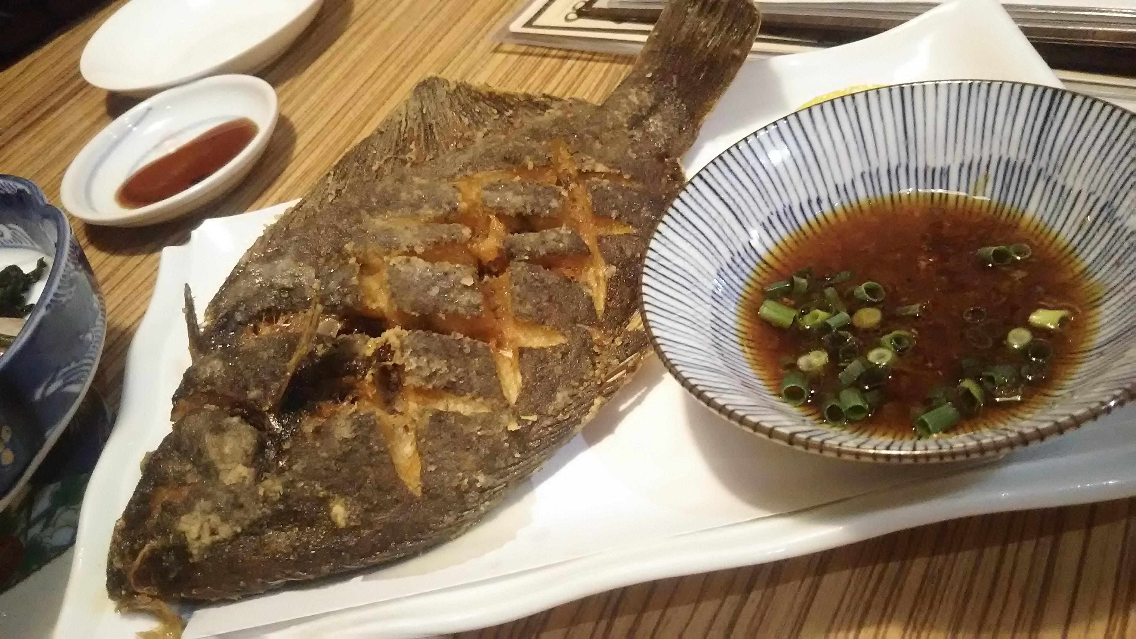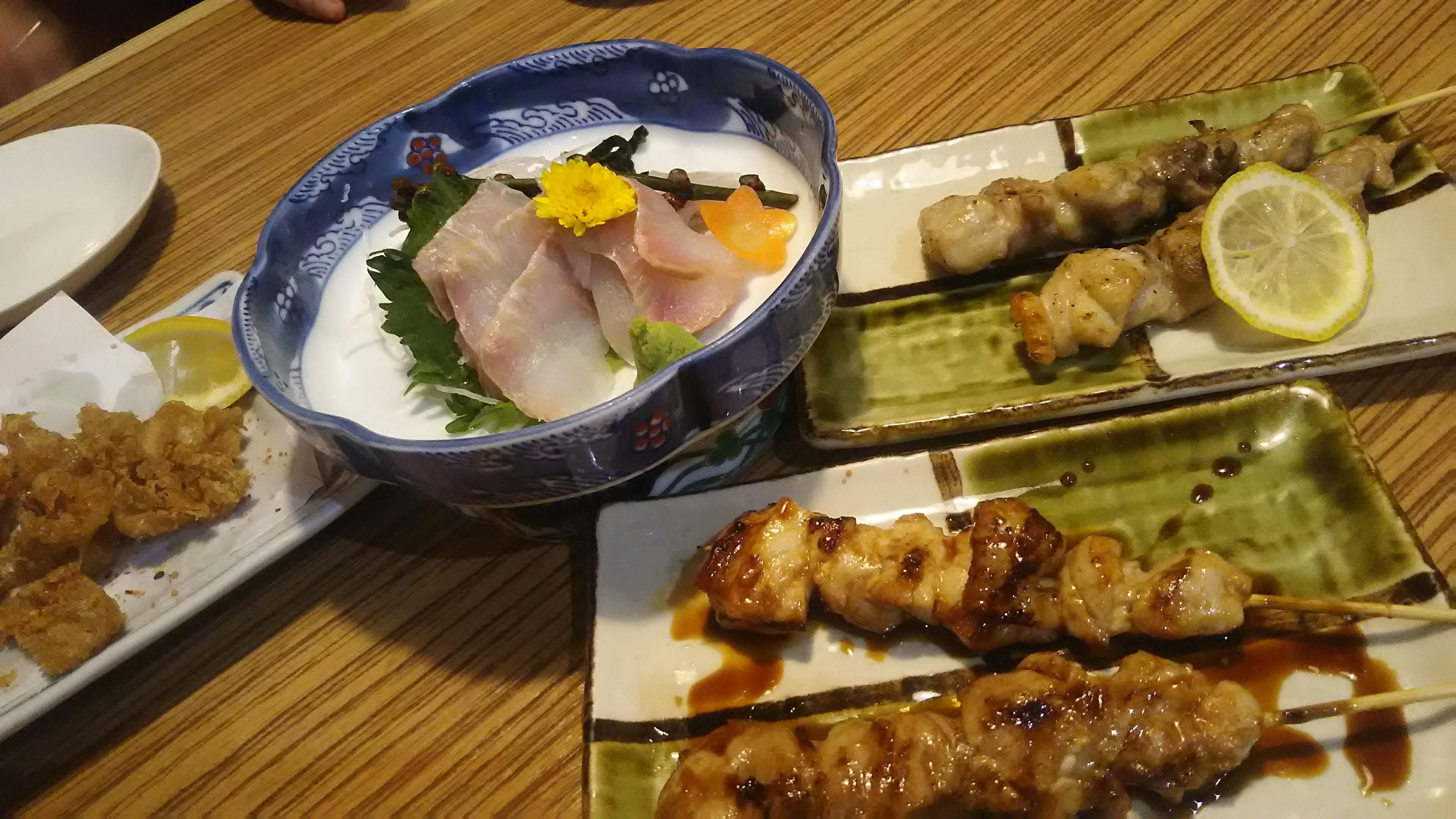 グランドメニューには、和、洋、中、など実に様々な料理これでもか・・・!と言うくらいに豊富にあります。今回は、その中から定番の焼き鳥を選び、本日のおすすめメニューから、ヒラメのお造りとカレイのから揚げを注文しました。