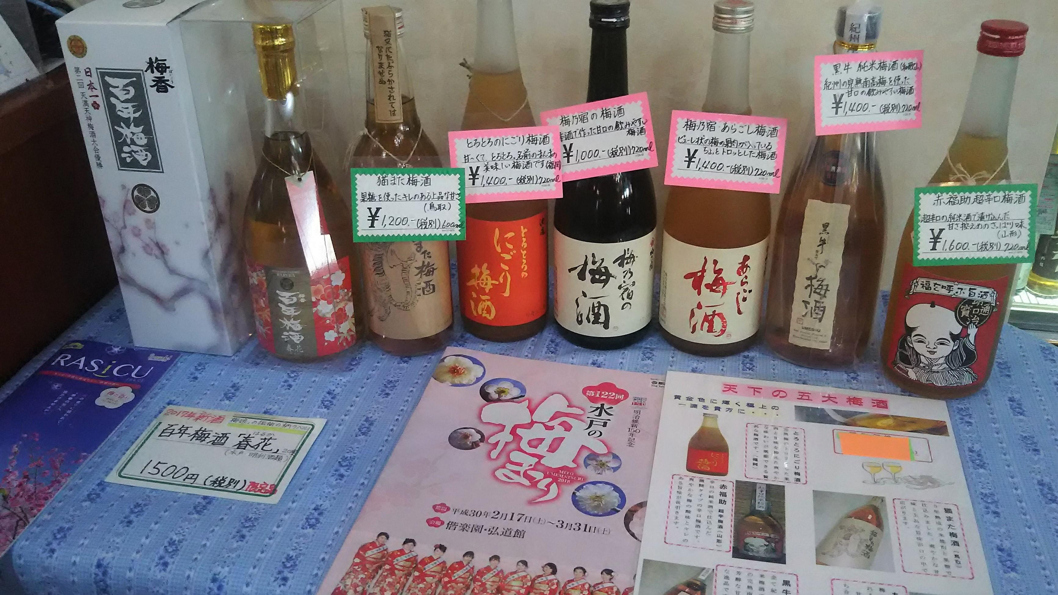 私の店でも、梅まつり開催に合わせて、店内のレジ前にお勧めの梅酒を並べています。まず水戸を代表する梅酒と言えば『百年梅酒』ですね!そして、その『百年梅酒』の春限定バージョンが梅大使の着物柄をデザインした『百年梅酒・春花』です。また鳥取県の千代むすび酒造さんが造る『猫また梅酒』はアルコール度数ちょっと高め。甘~くて、とろとろとした梅酒がお好きな方には福岡県の池亀酒造さんの『とろとろにごり梅酒』がお勧めです。