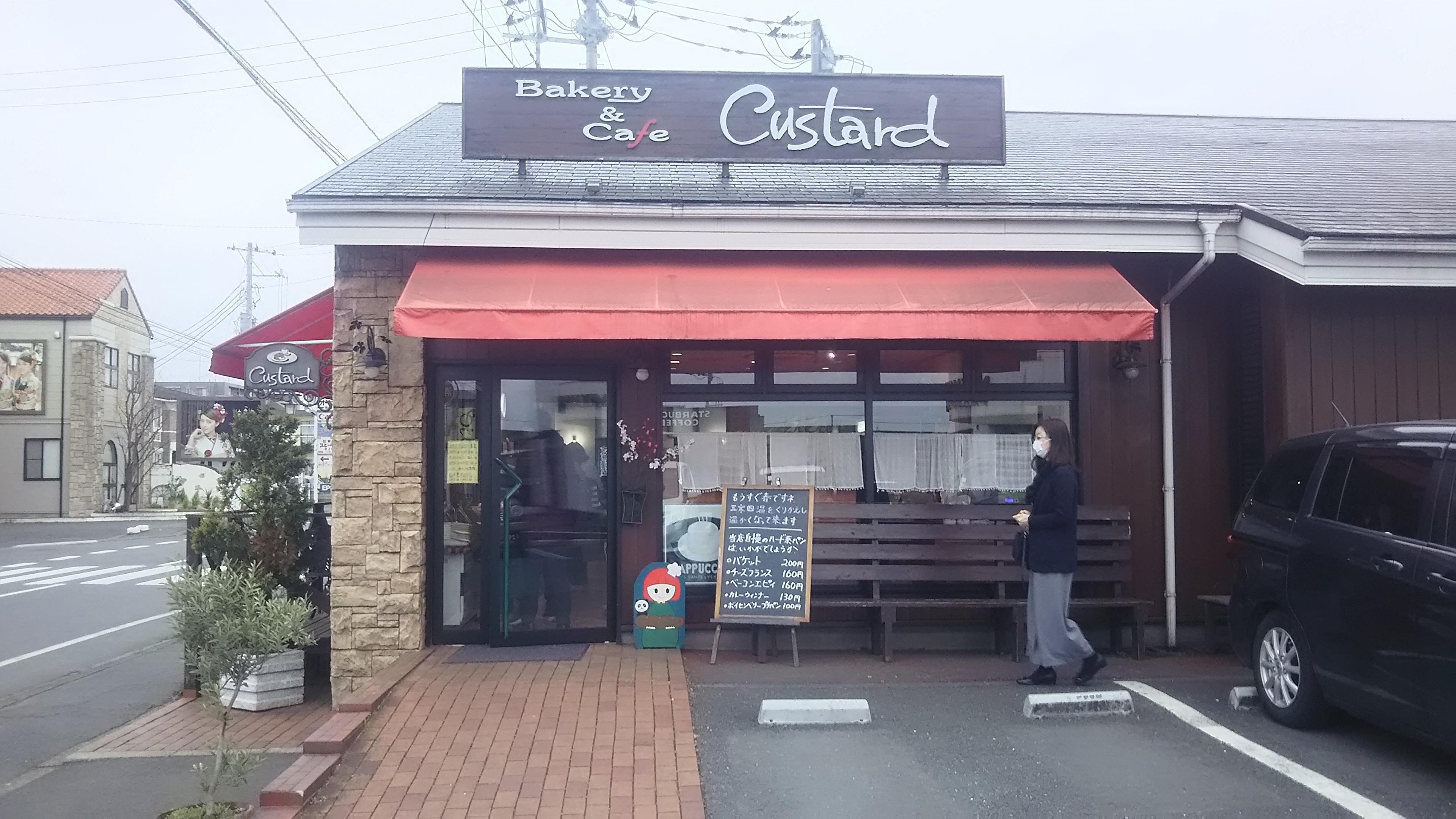 今日はお酒の話題ではなく、私がよく利用させていただいているパン屋さんをご紹介したいと思います。なぜ『パン屋さん』なのかと言うと・・・先日の春分の日にお邪魔したばかりだからです(笑)そのパン屋さんは当店から車で10分程の水戸市姫子にある『ベーカリーカフェ・カスタード』さんです。パンだけでなく焼き菓子も色々とあるので、蔵元訪問する時やみどりさんの実家に行く時の手土産を買っています。春分の日も自宅用とお土産を買いに行ってきました。