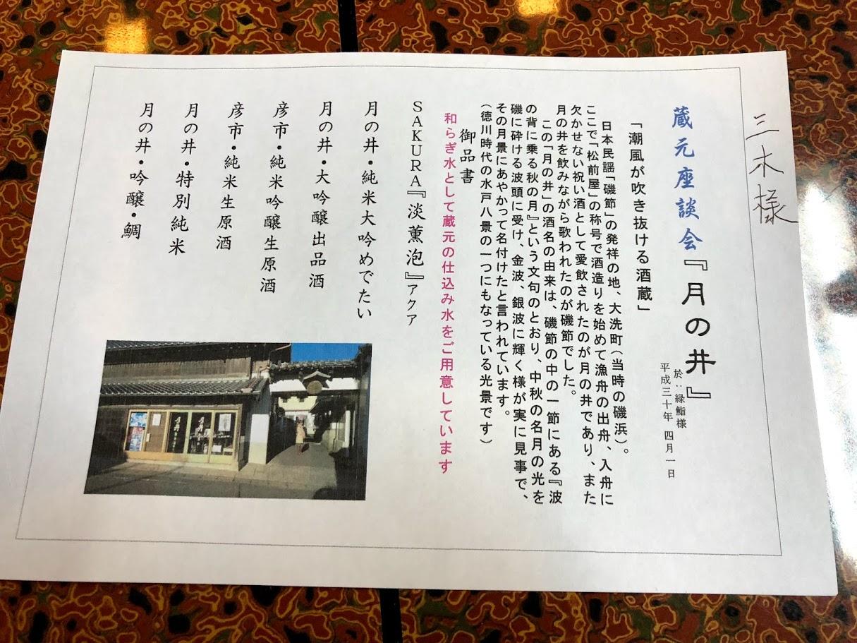 お酒の会の様子は、フェイスブックにてアルバムを掲載させて頂いていますので、そちらをご覧ください。また、グーグルフォトにて『蔵元座談会2018年、月の井酒造』のアルバムを作成しております。ご興味がございましたら、ご連絡ください。ラインまたはメッセンジャーで送らせていただきます。