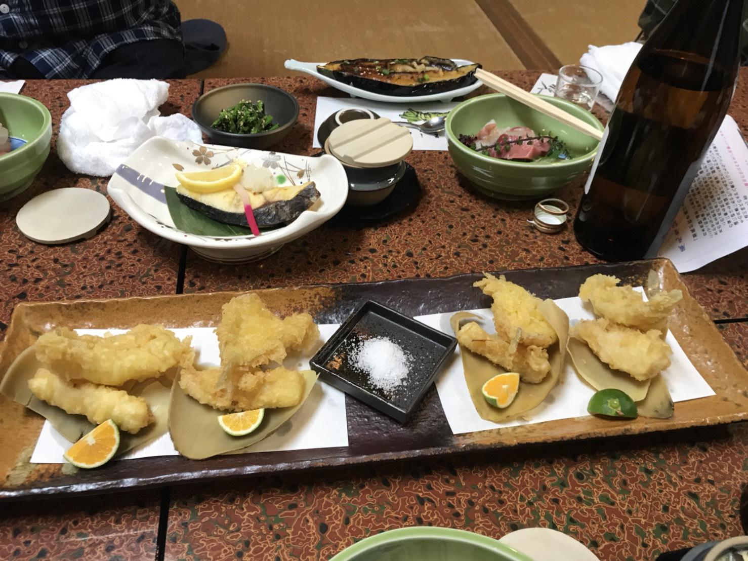 続いて、八代目蔵元が創った新ブランド『彦市シリーズ』を頂きました!純米生原酒の荒走りは、シャーベットのような清涼感溢れる味わいで、一気に気分がリフレッシュします。地元大洗で栽培した『こしかぐら』で仕込んだ純米吟醸は、上品な果実の香りと柔らかな後口が感じられました。この日の料理は、刺身の三点盛に始まって、菜の花のお浸し、具沢山の茶碗蒸し、焼き魚に茄子田楽、旬のタケノコを使ったてんぷら盛り合わせと出揃い、最後は握り寿司と巻物で〆ました。酒の肴にぴったりの料理が、参加者の舌を楽しませてくれました。