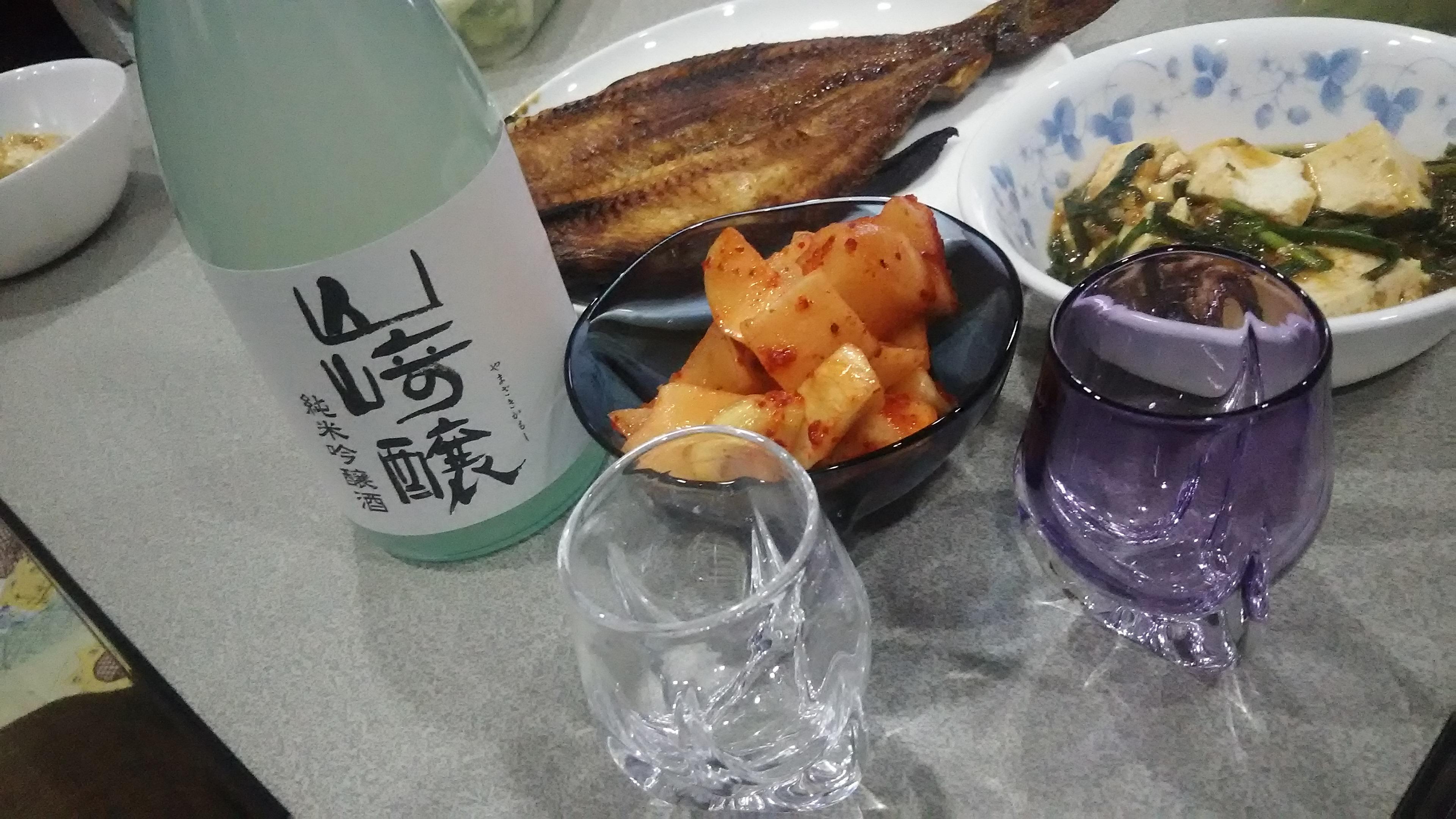 無茶ぶりな質問で大変失礼しました。我が家では、日頃から勉強と称する晩酌(笑)をしており、その日の献立に合わせて、お酒を選んでいます。えっ?羨ましいですって。いや~、勉強ですから(笑)最近は孝之さんと相談してその日のお酒を選んでいるのですが、昨夜はクイズ形式でお酒を選ぶことを思いついたんです。それが『敦志検定』という訳です。昨夜のお題は、『焼き魚とキムチ(大根のカクテキ)、麻婆豆腐』に合うお酒です。(富山産の肉厚のホッケの干物と、本場韓国のキムチを頂いたので)
