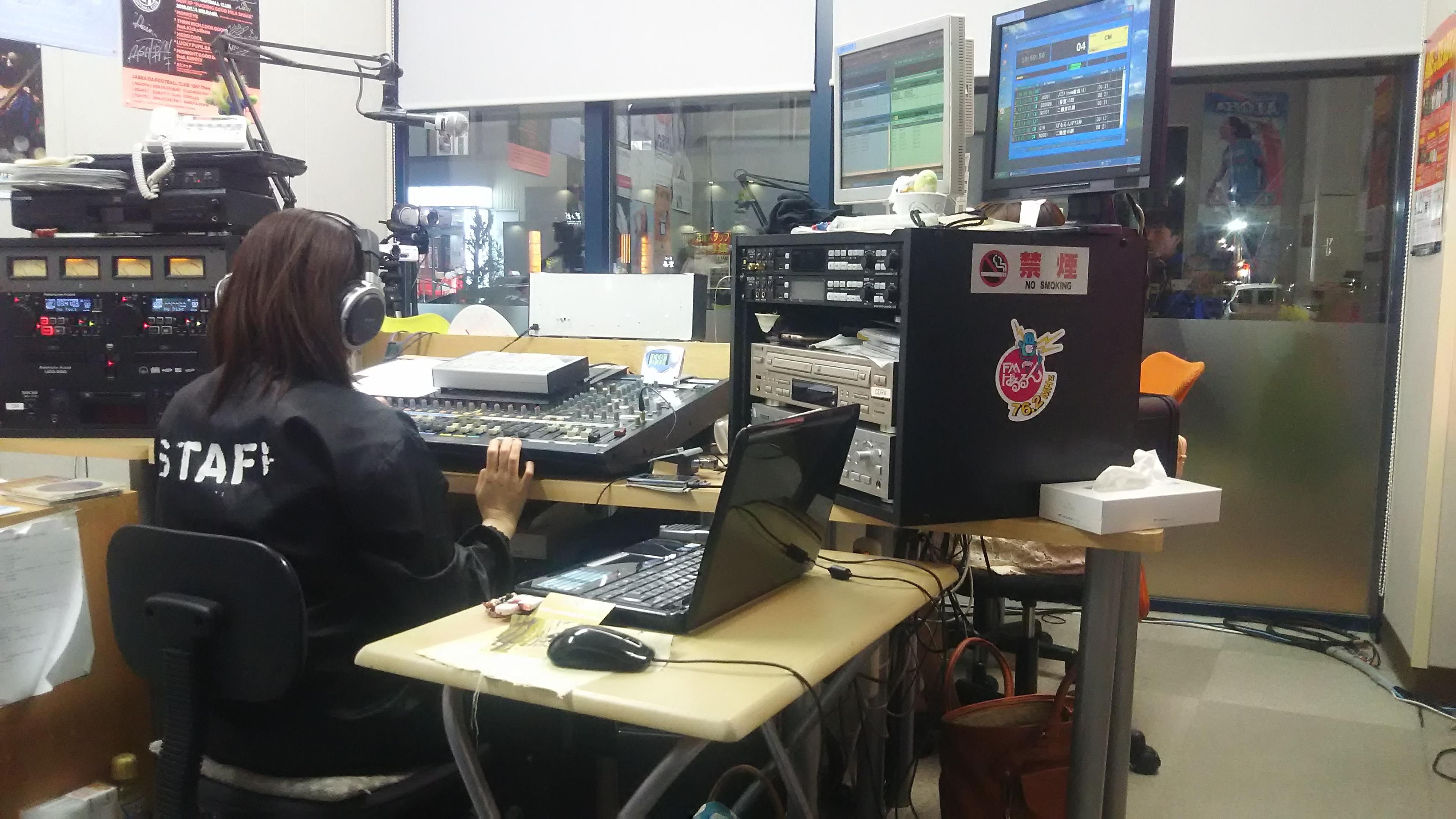 スタジオ内は放送機材が所狭しと置かれていて、どこか無機質な感じがしましたが、パーソナリティの茅根早苗さんが話し始めた途端、スタジオ内の空気が和やかな雰囲気に一変し、サスガ!プロの方は違うなぁ~と思いました。限られた時間の中、ディレクターの方と阿吽の呼吸でテンポよく番組が進められていく様子に、思わず見とれてしまいました(笑)