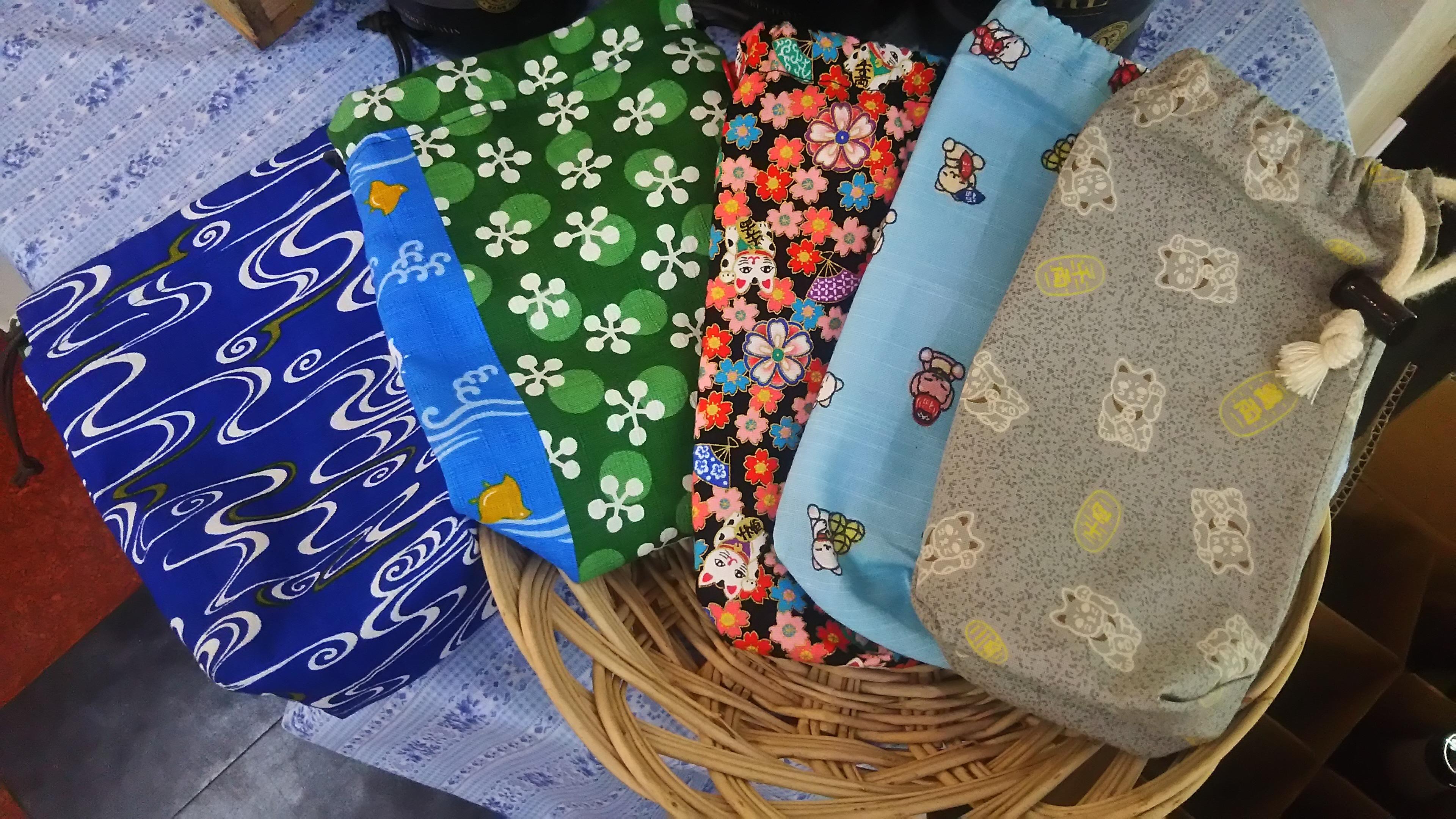 そしてこの度、ぐい呑み袋をリニューアル発売しました。製作は、度々ブログでもご紹介している縫製のプロ『ヌーピー先生』にお願いしました。改良点は、まず一つ目は今までよりも一回り大きめのサイズに統一した事。このサイズなら大きなグラスも余裕で入ります。500ミリのペットボトルも入りますよ!