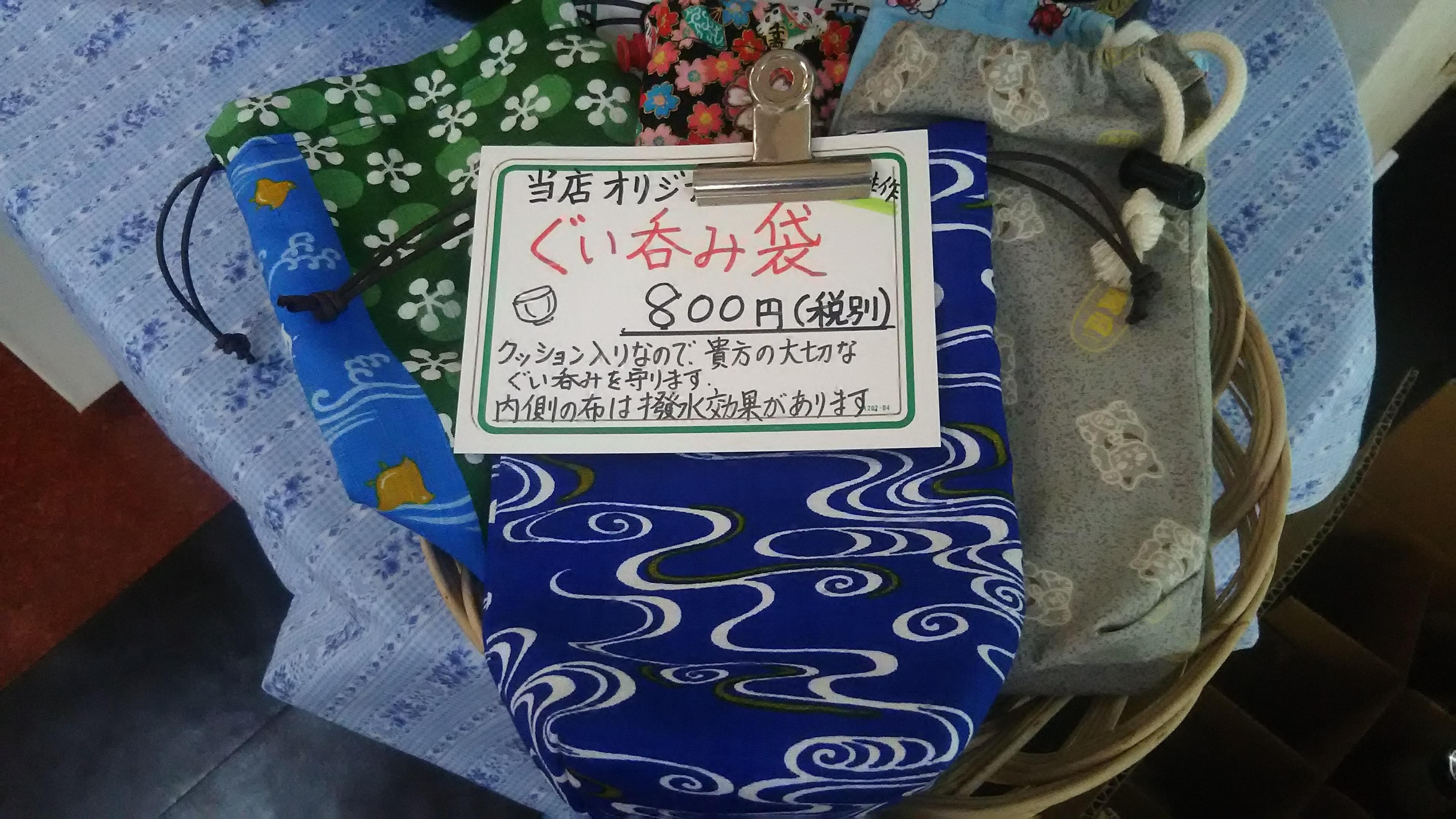 オリジナルぐい呑み袋 800円(税別)