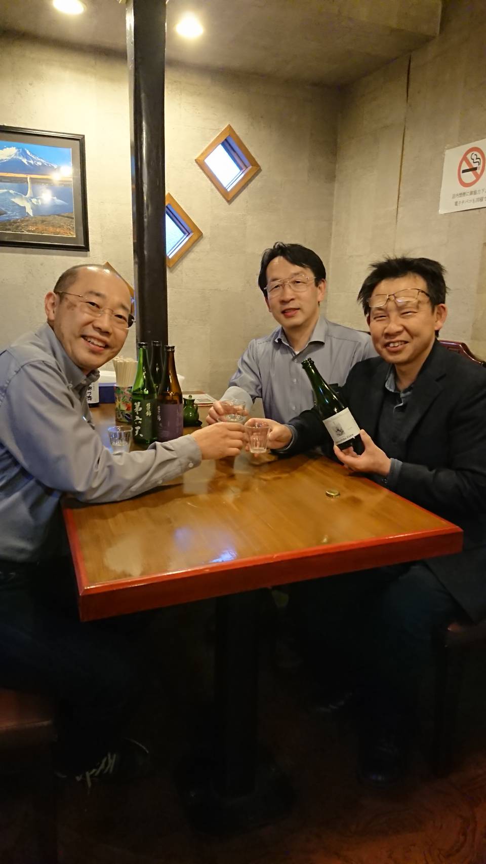 乾杯には修ちゃんも合流し、『純米大吟醸・錦乃舞』の10年物で伊那の飲み会がスタートしました!日本酒と本格中国料理との相性はどうなのか?と、思われるかもしれませんが、これが意外とよく合うんですよ!見た目よりもさっぱりとした味付けの料理を、信濃錦の切れのある酸味が綺麗に流してくれます。エンジン全開のおじさん三人組に交じって、孝之さんも楽しく話をしていました。