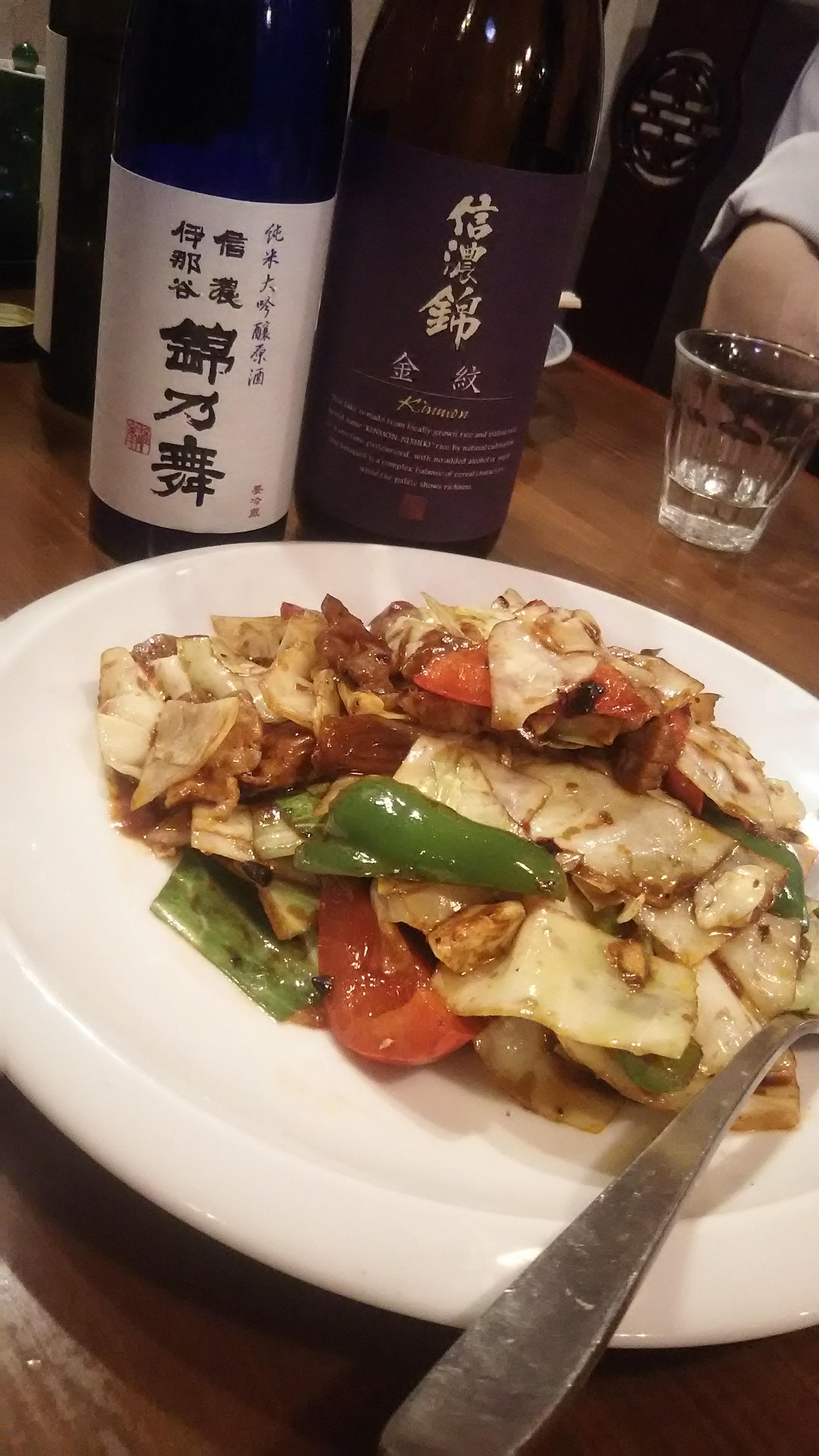 先ず最初にお邪魔したのは、宮島社長行きつけの本格中国料理のお店『美華(みか)』さんです。飲むお酒はもちろん信濃錦の日本酒。『え!日本酒に中国料理ですか?』と思いましたが、宮島さん曰く、この店の料理は絶品で、横浜中華街の一流店にも引けを取らない!なのだそうです。早速、一押しの『回鍋肉』に『酢豚』、『エビチリ』がテーブル一杯に並びました。