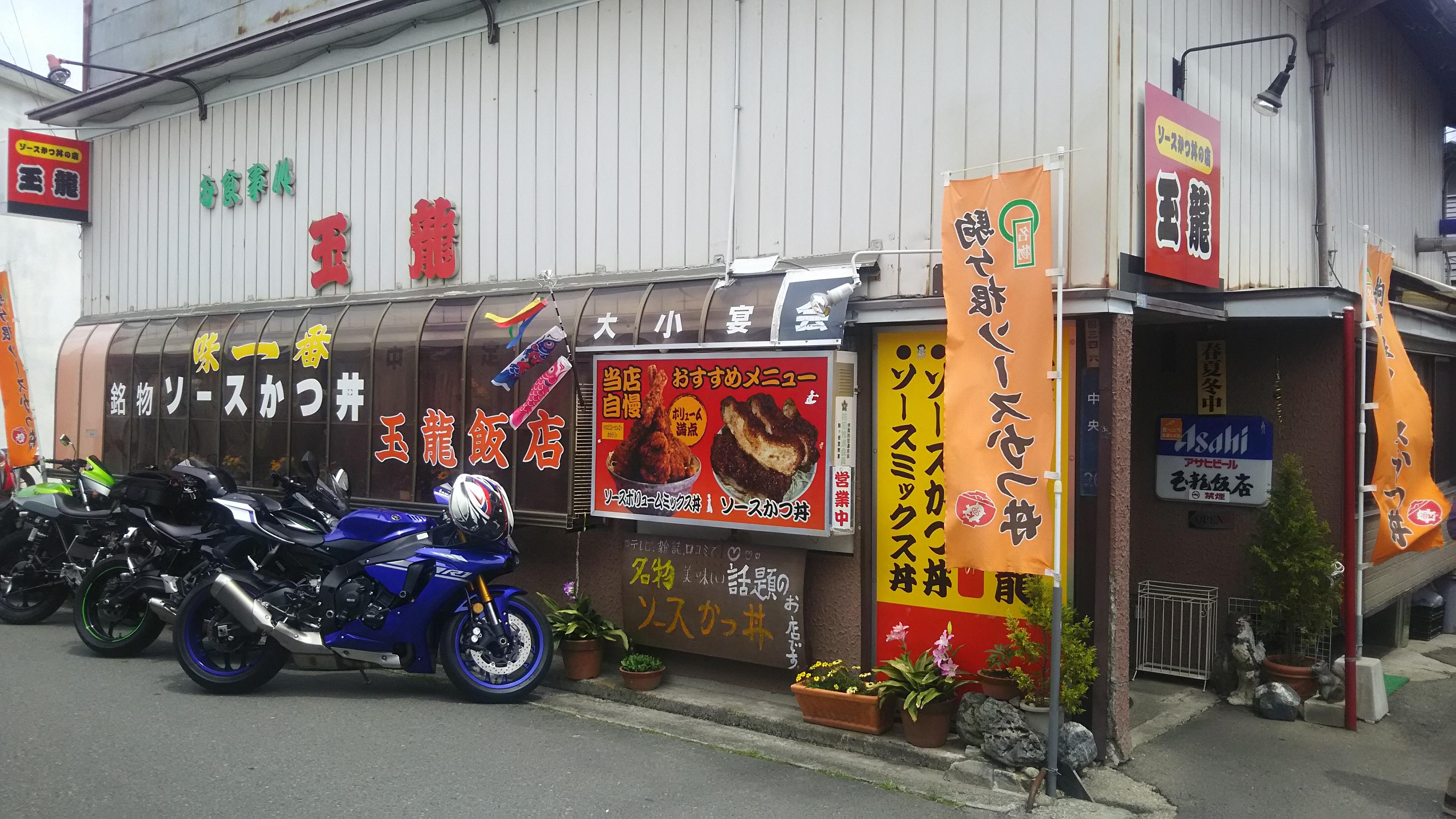 今回は、若い孝之さんが一緒という事で、信濃鶴の北原さんが気を利かせてくれて、駒ヶ根で一番人気のソースかつ丼屋さんの『玉龍』さんに連れて行ってくれました。こちらのお店は、蔵元から徒歩で5分のところにあり、北原さんが子供のころは中華屋さんだったそうで、店内にはそのころの名残が感じられます。また、こちらのお店は、バイク乗りの方にとても人気があるそうで、この日も店の前には大型のバイクが並んでいました。メニューはソースかつ丼のみで、ロース、ヒレ、ミックス、などです。