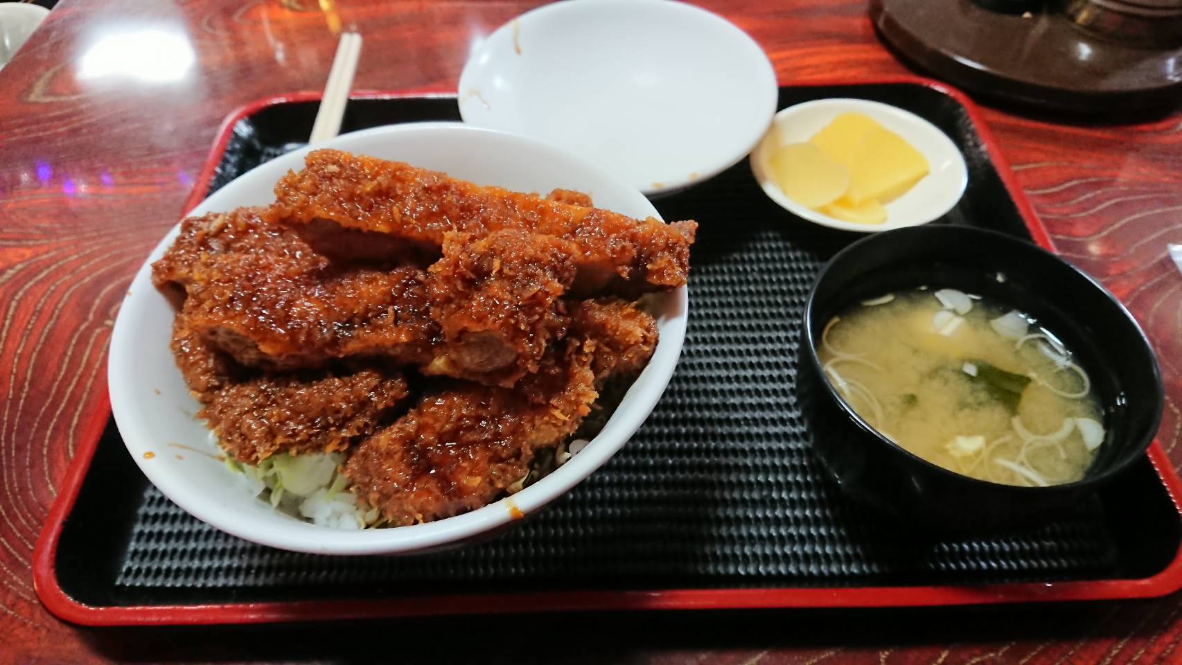 私たちは定番の『ロース・並盛』を注文しましたが、出てきたどんぶりを見てビックリ!どんぶりの蓋が閉まらないくらいのボリュームで、果たして食べきれるのか心配になりましたが、特製のソースが絡んだカツはとても柔らかく、中に敷き詰められたキャベツの千切りのおかげで、何とか完食することができましたが、孝之さんは、ちょっと苦戦していたそうです!でも、また何故か食べたくなってしまう味わいでした(笑)