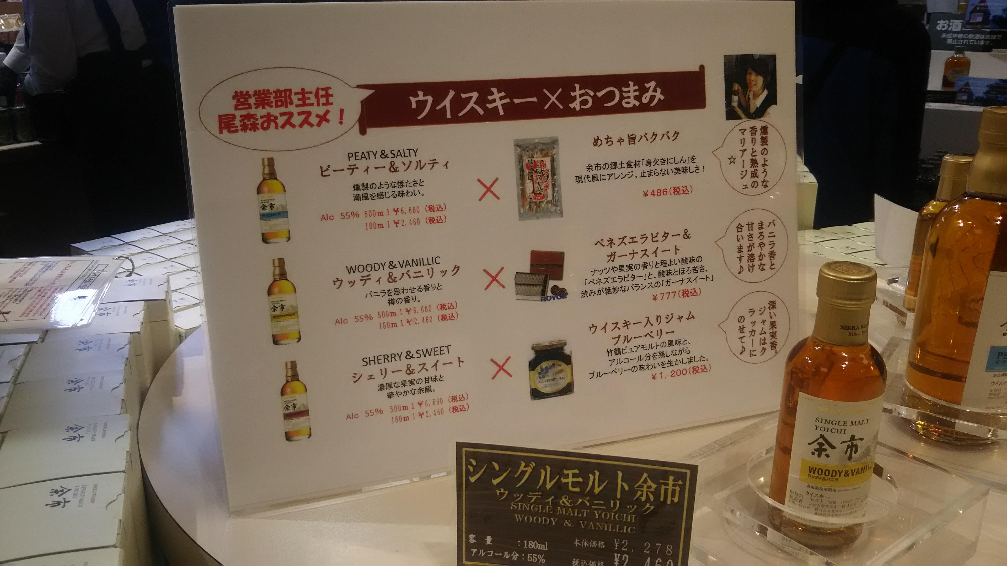 今回買い求めてきたウイスキーはアルコール度数55%の500mlボトルで、販売コーナーにはウイスキーの味わいとともに、おつまみとのマリアージュも記載されていました!通常販売されている『シングルモルト余市』とはまるっきり別物のお酒で、香りや味わいに特徴を持たせた工場ならではの特別品です。
