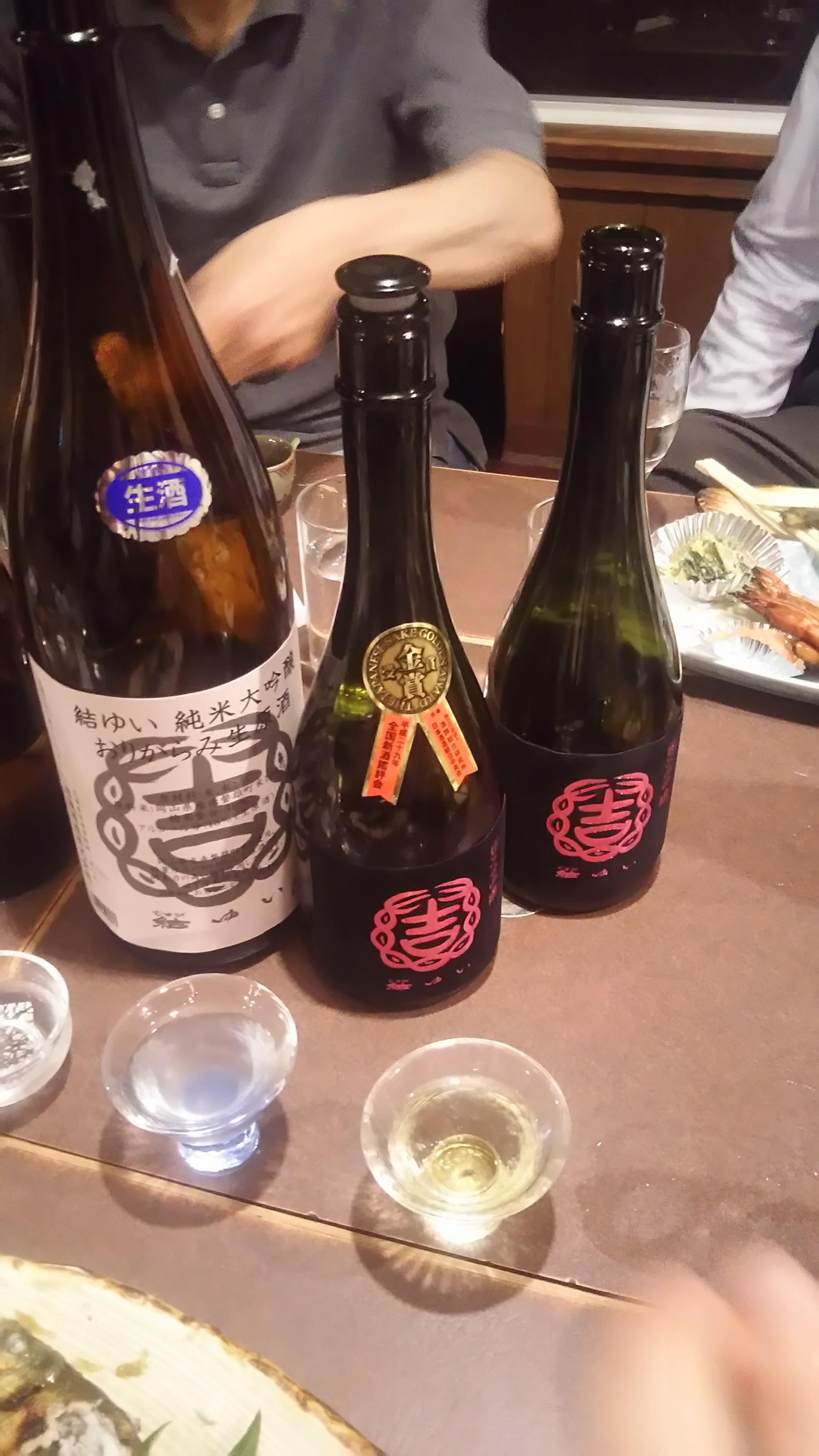 今回の『蔵元座談会』は、『結(ゆい)』の銘柄で知られる人気急上昇中の結城酒造さんをお招きして、開催いたしました。平日、木曜日の夜の開催にもかかわらず、ご案内を出した途端に沢山の方からお申し込みを頂き、あっという間に定員に達してしまいました。という訳で当日の会場は満員御礼!隣の方と肘がぶつかってしまうくらいぎゅうぎゅう詰めでした。