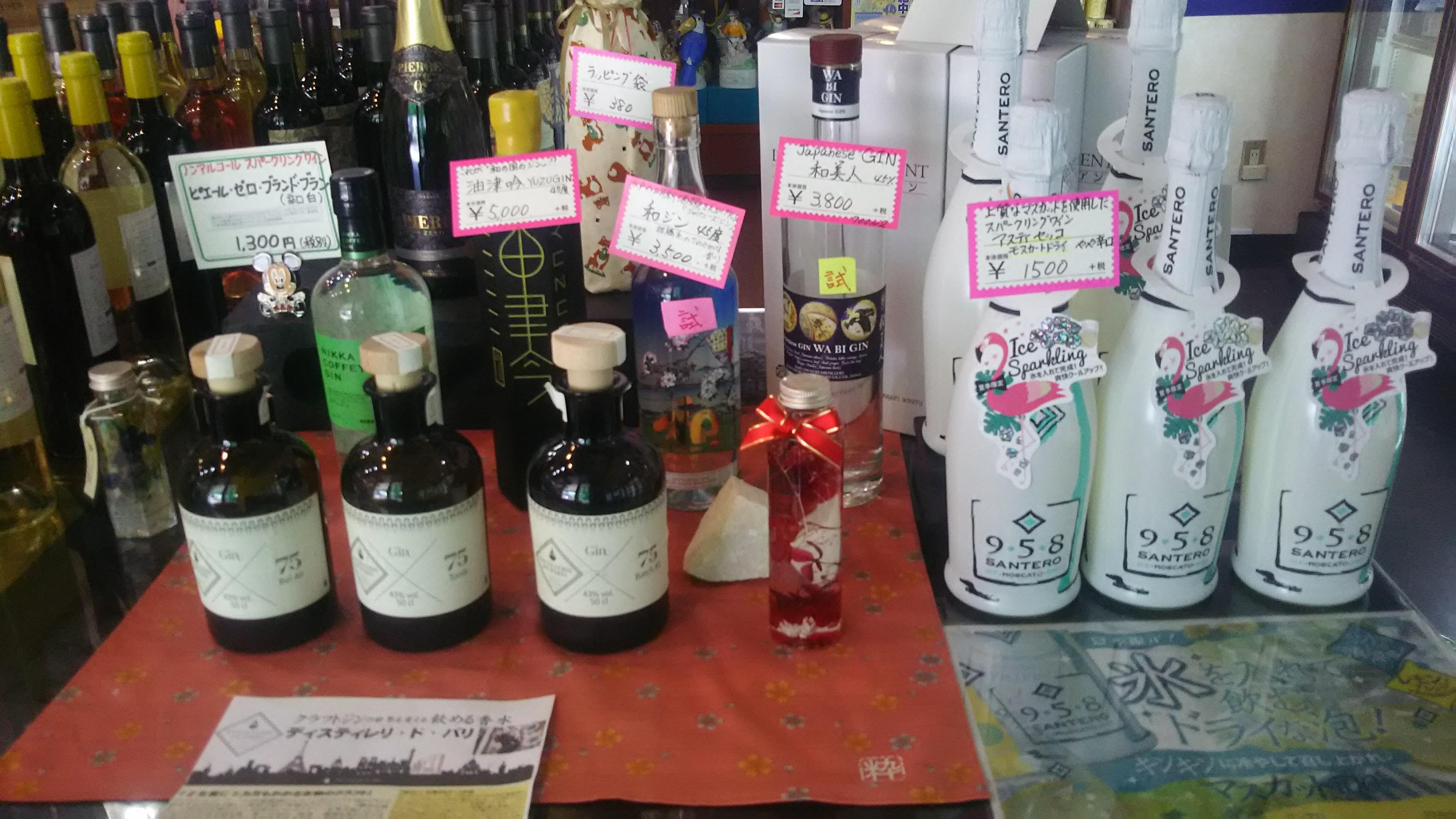 今まで正面に飾っていた『国産ワイン』を陽の当たらない奥側に移動して、先日のワイン展示会で見つけてきた新商品を並べることにしました。今回のテーマは『この夏に楽しみたいクラフトジンとスパークリングワイン』です!