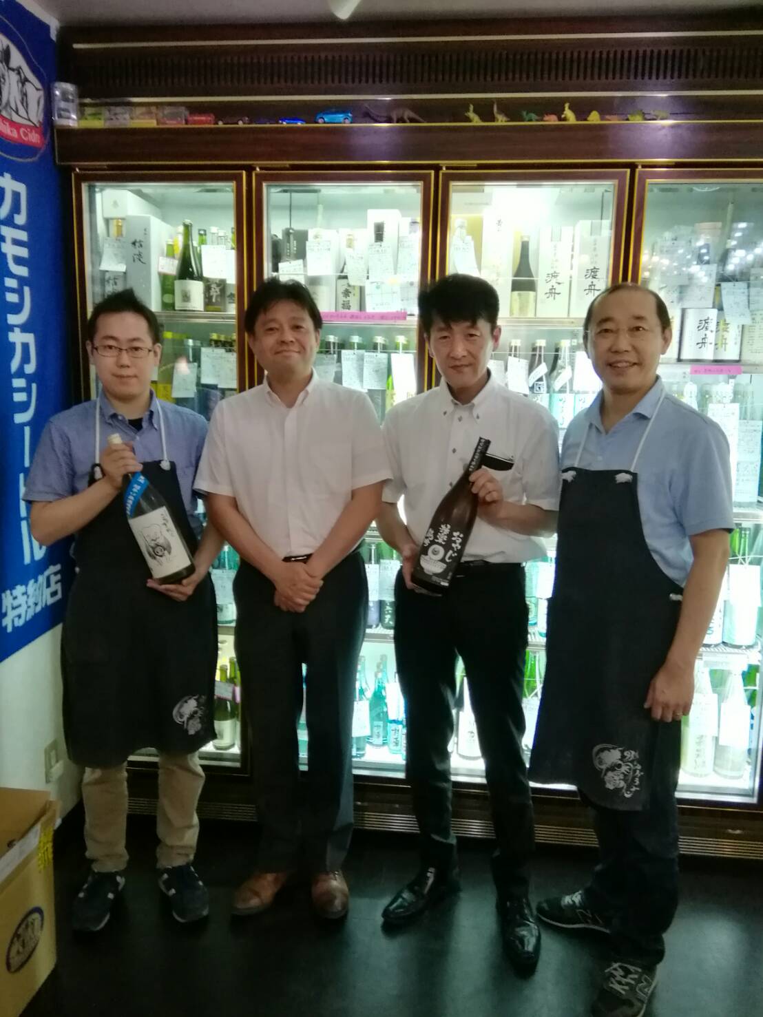 千代むすび酒造さんとは、かれこれ10年以上お付き合いをさせて頂いており、『ゲゲゲの鬼太郎』シリーズの妖怪をラベルデザインに使った商品は、当店の人気銘柄として、沢山の日本酒ファンに愛されています。今回は、酒造りが一段落したタイミングを利用して、茨城県の酒蔵様に見学に来られたそうで、その合間にわざわざ当店にも立ち寄ってくださいました。