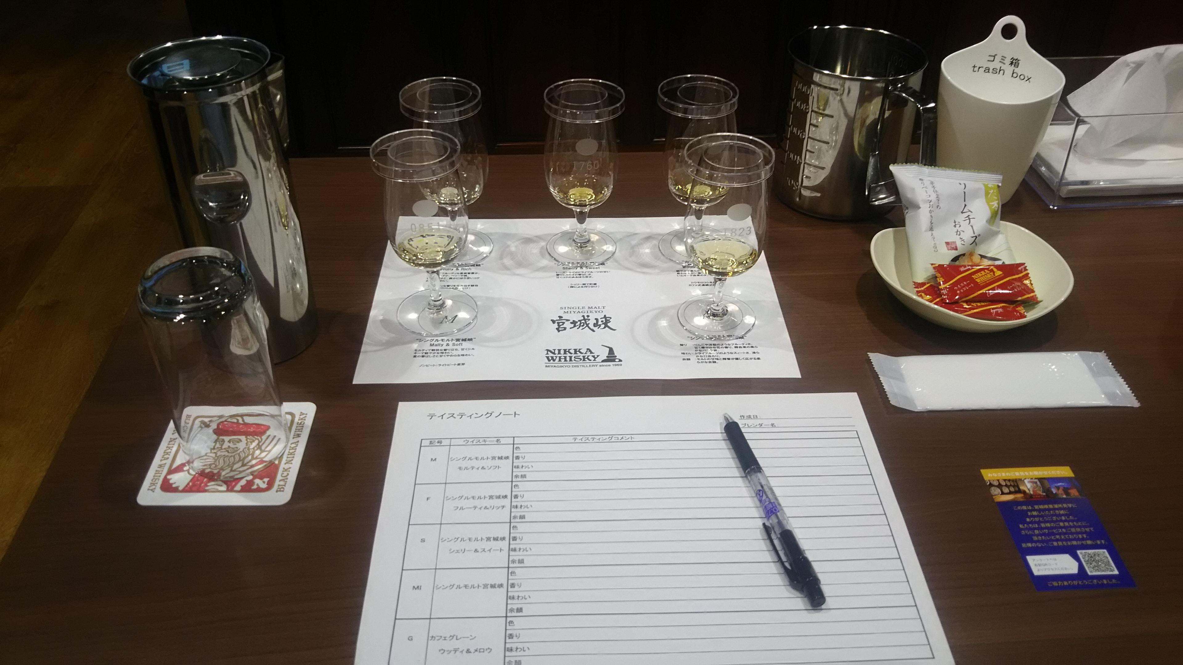 テイスティングでは、シングルモルト宮城峡のベースモルトである三種類のモルト原酒を『色、香り、味わい、余韻』に気を付けながら味わいました。『ブレンダー』さんは、これらの原酒を巧みに使い分けながら最高のバランスでブレンドしていくのですから、その卓越した感性と技術は凄いです!ブレンダーさんは、飲まずに香りだけで、何百という原酒を分類していくのだそうですよ(驚))
