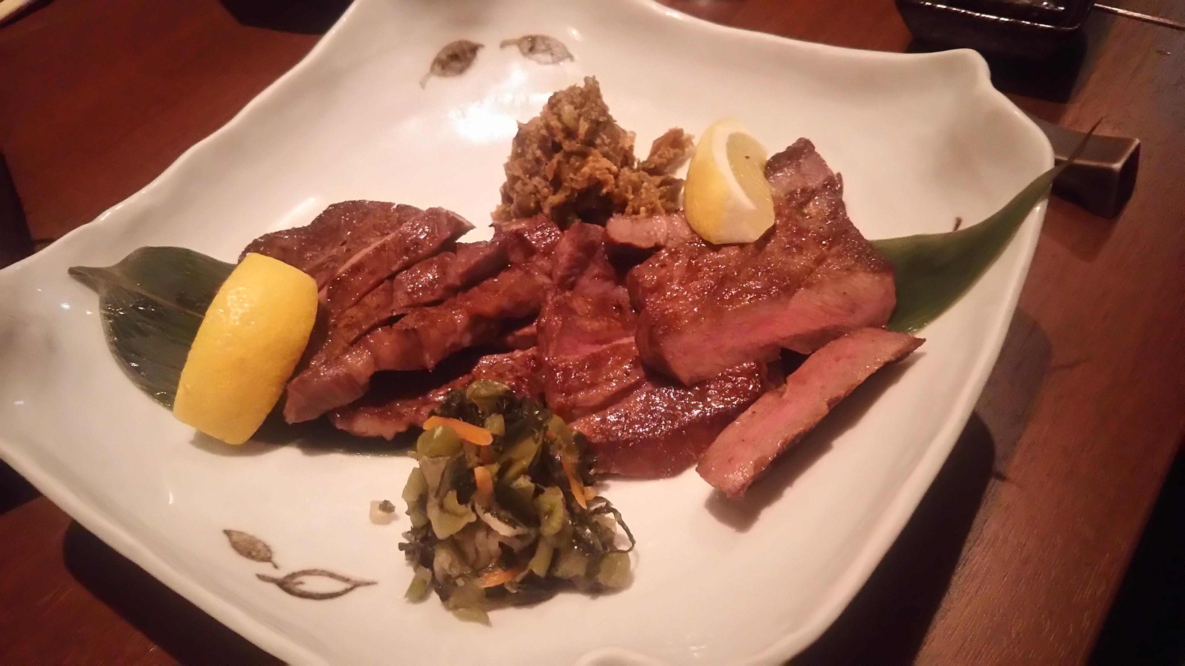 メニューを見ていると、あれもこれも食べたくなって、東北、宮城の地の物を中心に、刺身の盛り合わせ、サラダ、茄子の揚げびたし、牛タン、オムレツ、油揚げ、森林鶏の仙台味噌漬け焼き、ほや酢、等を、立て続けに注文しました!やはり、仙台に来たら『牛タン』と『ほや』は外せませんよね~。お店一押しの厚切り牛タンステーキの美味しさに感激!初めて『ほや』を食べたみどりさんと孝之さんの感想は『お~!海を食べているみたいだ!(つまり、磯の香りそのものってこと)』でした(笑)。地酒を頂きながら味わう仙台グルメはどれも美味しかったです