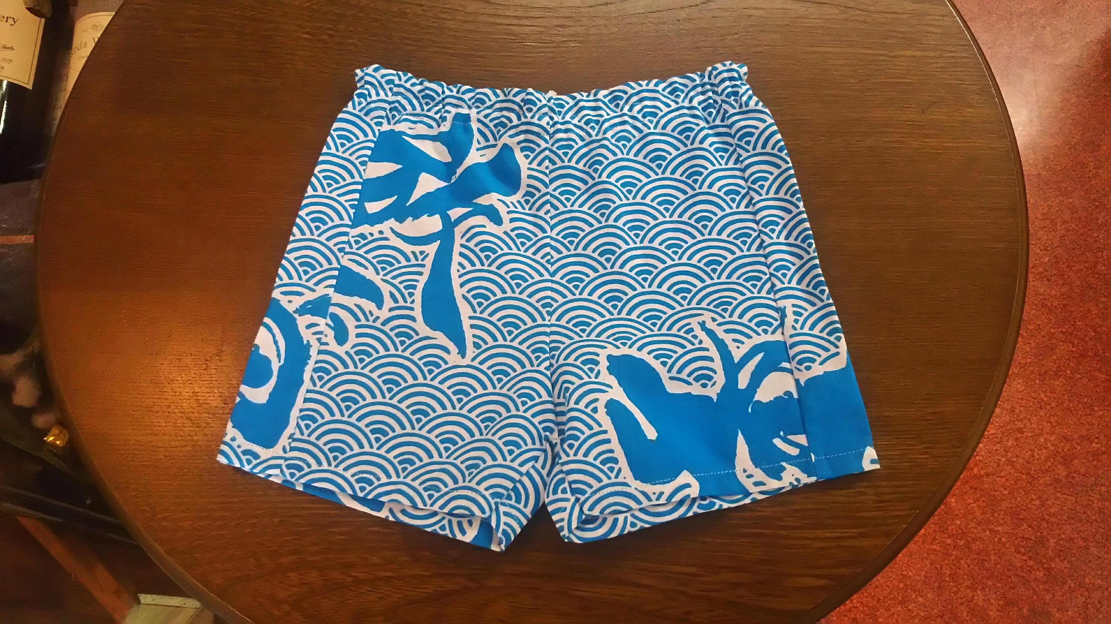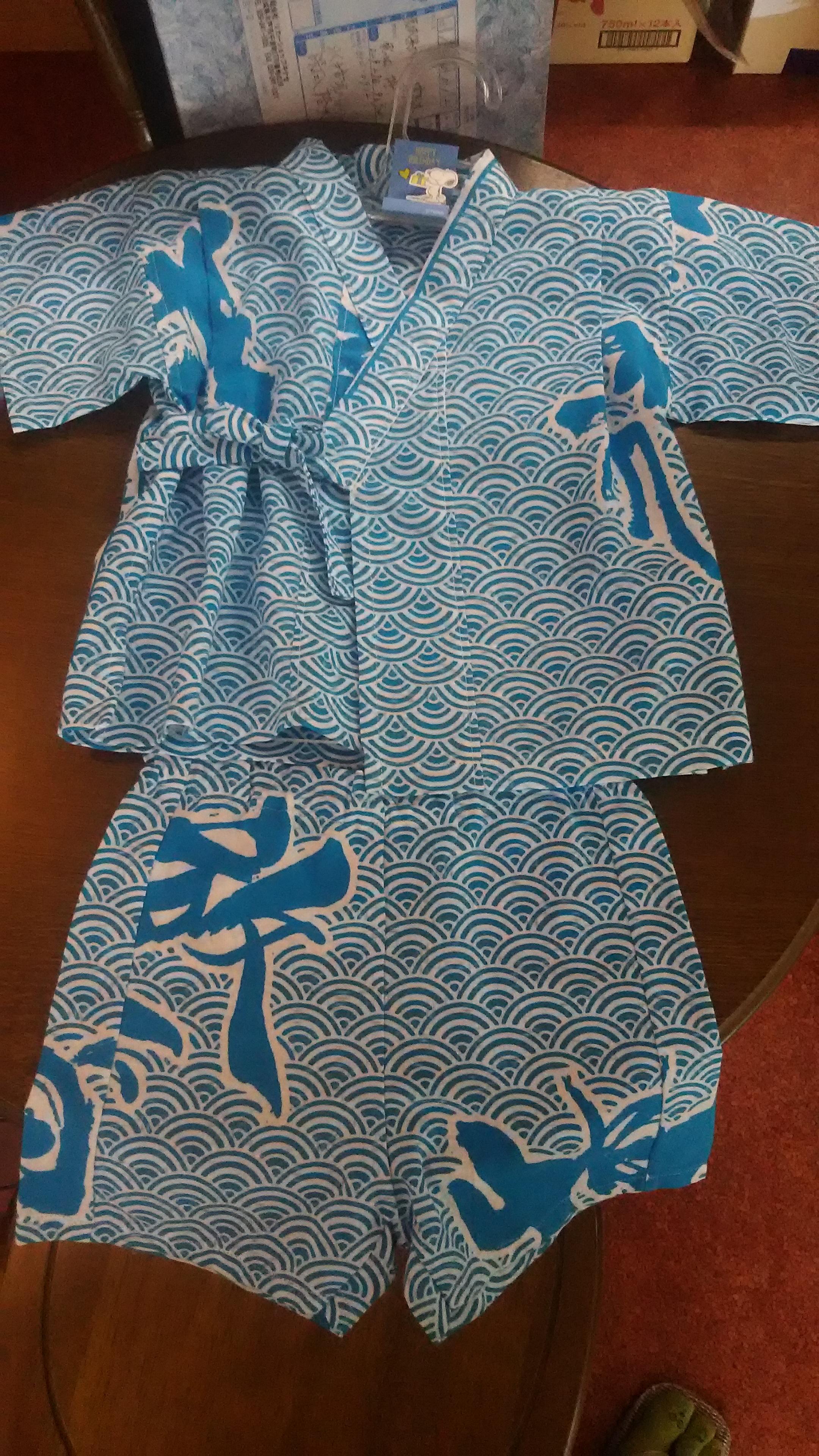 その後『ぬーぴぃ先生』から、暖簾と同じく二枚の手ぬぐいを使えば、子供用の『甚平』が作れるという事を伺い、さっそく製作をお願いしました。その出来栄えは、前回の『暖簾』を上回る完成度の高さで、改めて『ぬーぴぃ先生』の技術の高さに感激してしまいました!