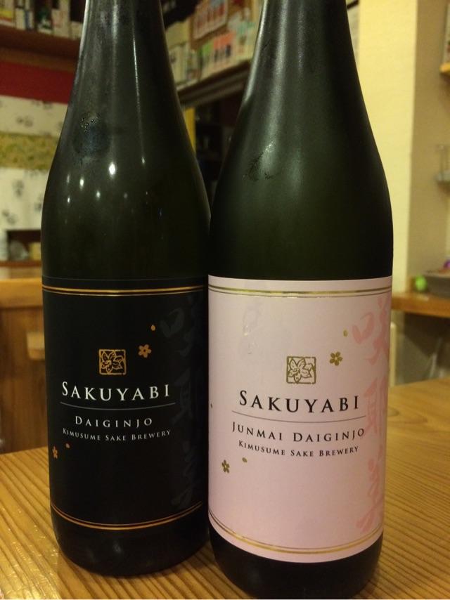 しかも、今回は『大吟醸』と『純米大吟醸』の豪華二本立て(笑)の登場となりました!箱から出したお酒を見てビックリ、ラベルに日本語の表記が全くありません・・・、初めて見た人は、これが日本酒だとは思わないでしょう!通常の『咲耶美』のラベルも和柄の小紋柄でとっても可愛らしいのですが、今回のラベルは、お洒落感がハンパないんですよ~!