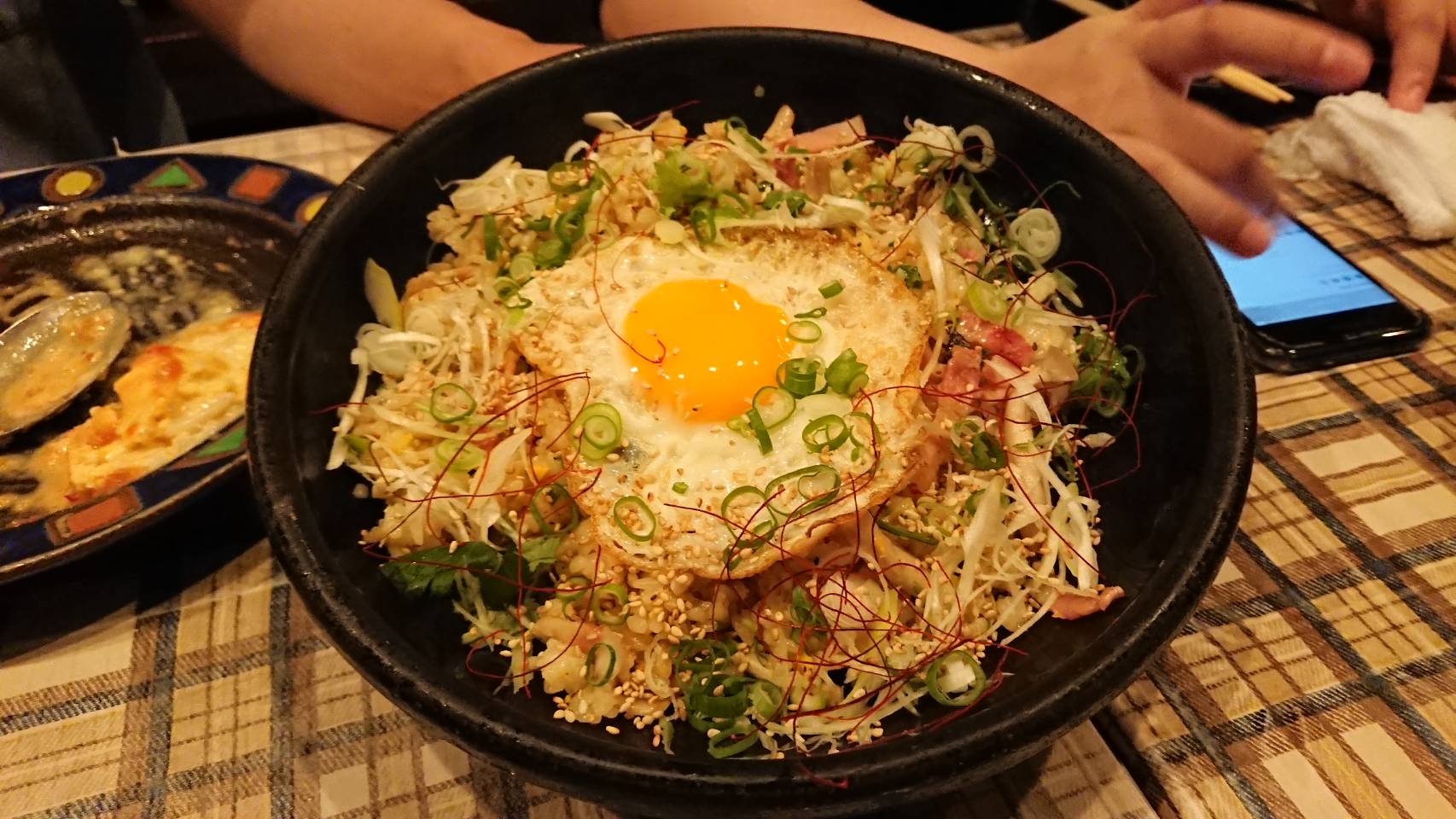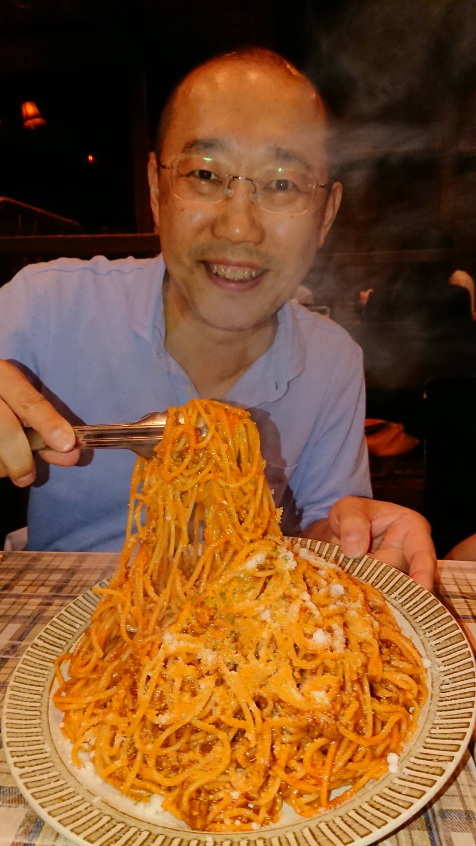 先ずはビールで乾杯。お通しに出てきたインゲンの磯辺揚げが、程よい塩加減で、ビールによく合うんですよ!そうこうしていると、ドンドン料理が運ばれてきます。このスピードの速さも嬉しいですね。生ハムとレタスのシーザーサラダ、豚トロ焼き、王堂のオムレツは魚介がたっぷりと入っています。オムレツは毎回頼んでしまう、安定感抜群の美味しさです。王堂の焼飯は、これで1人前?と思ってしまうボリュームの良さ!そして、ボーローニャ風ミートパスタをビックサイズで注文したころ、その量の多さに一同唖然としてしました。
