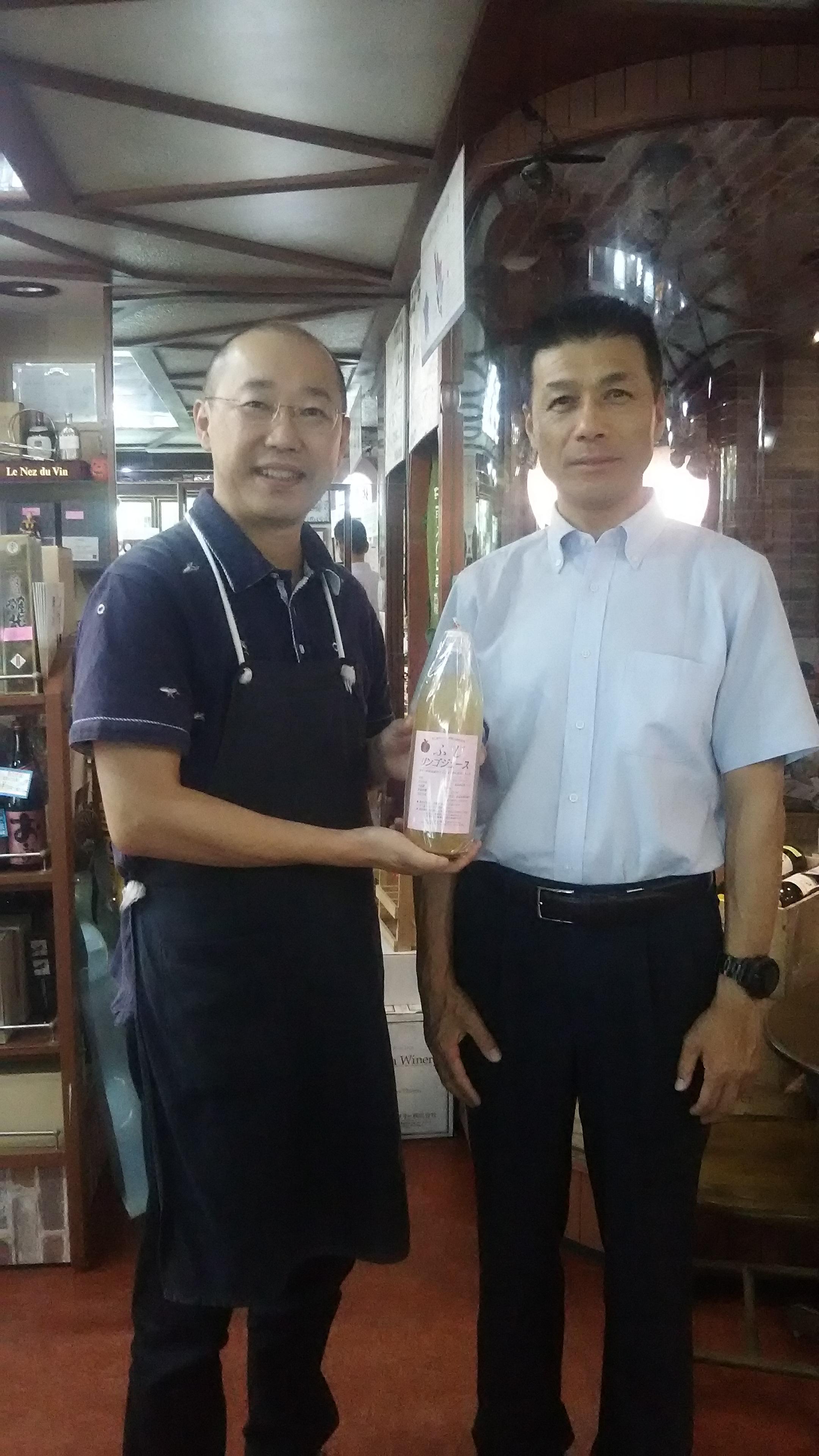 竹下さんとお付き合いを始めたのは、今から10年以上も前にさかのぼります。当時、私は美味しいジュースを探しており、まさに自然の味わいをそのまま瓶に詰めた竹下さんのリンゴジュースの味わいに感動し、すぐさまお取引をさせて頂きました。毎回、長野県の飯田市から、5時間以上もかけて竹下さん自ら届けに来てくださります。本当に頭の下がる思いです。