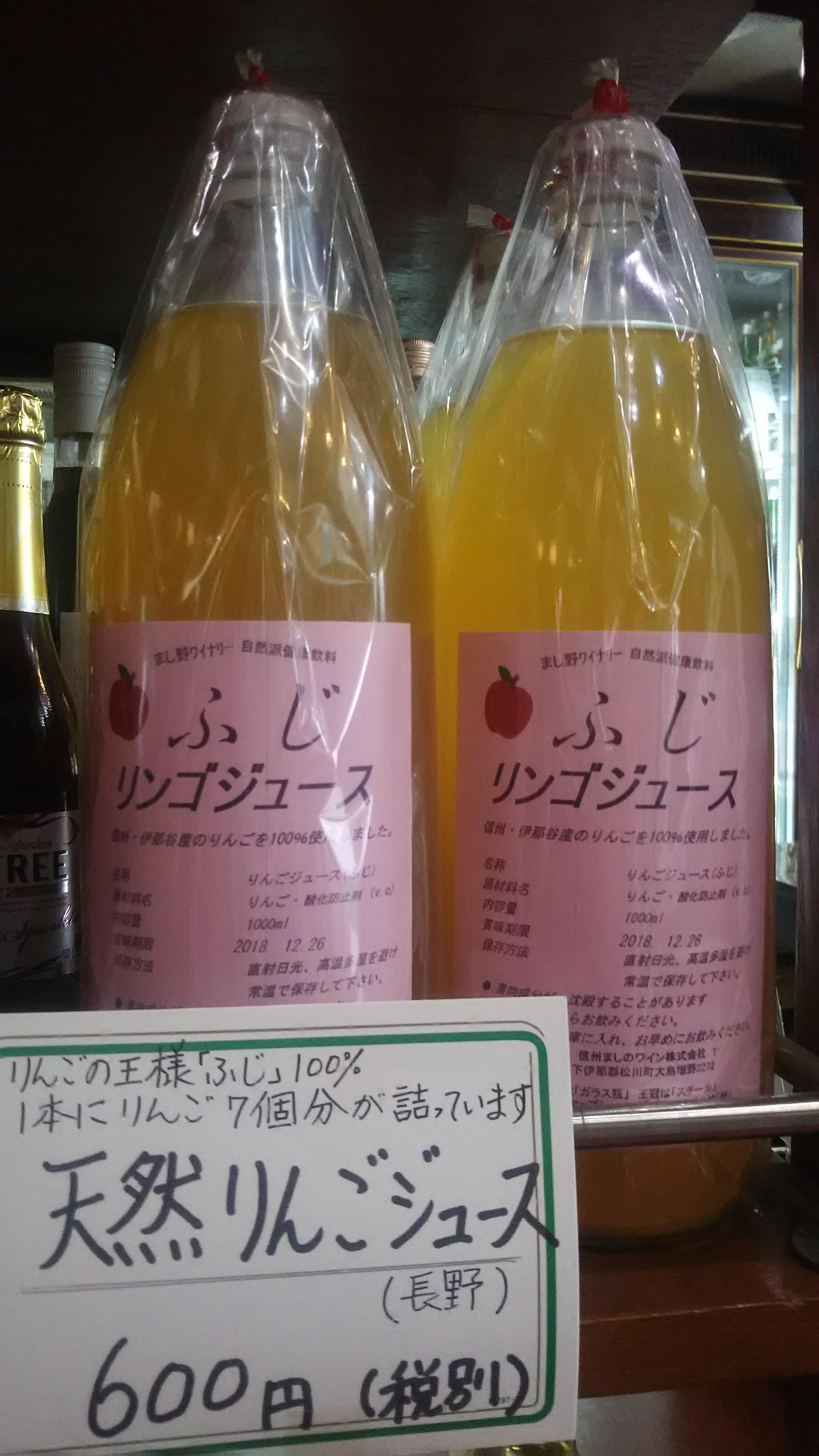 このリンゴジュースは、長野県のリンゴ銘産地、松川産のフジ100%で作ったもので、リンゴ農家の竹下さんが無農薬、無除草剤栽培で栽培したリンゴが、1本の中に7個も入っているんです。その造り方はとってもぜいたく!リンゴを丸ごとプレスすることで澄んだリンゴ果汁だけが絞れます。爽やかなリンゴの香り、ほのかな甘み、後口の上品な酸味を持ち合わせた、農家さんが造る極上のリンゴジュースです!もちろん、水を一滴も加えていないので、リンゴを丸ごと食べたのと同じという訳です。
