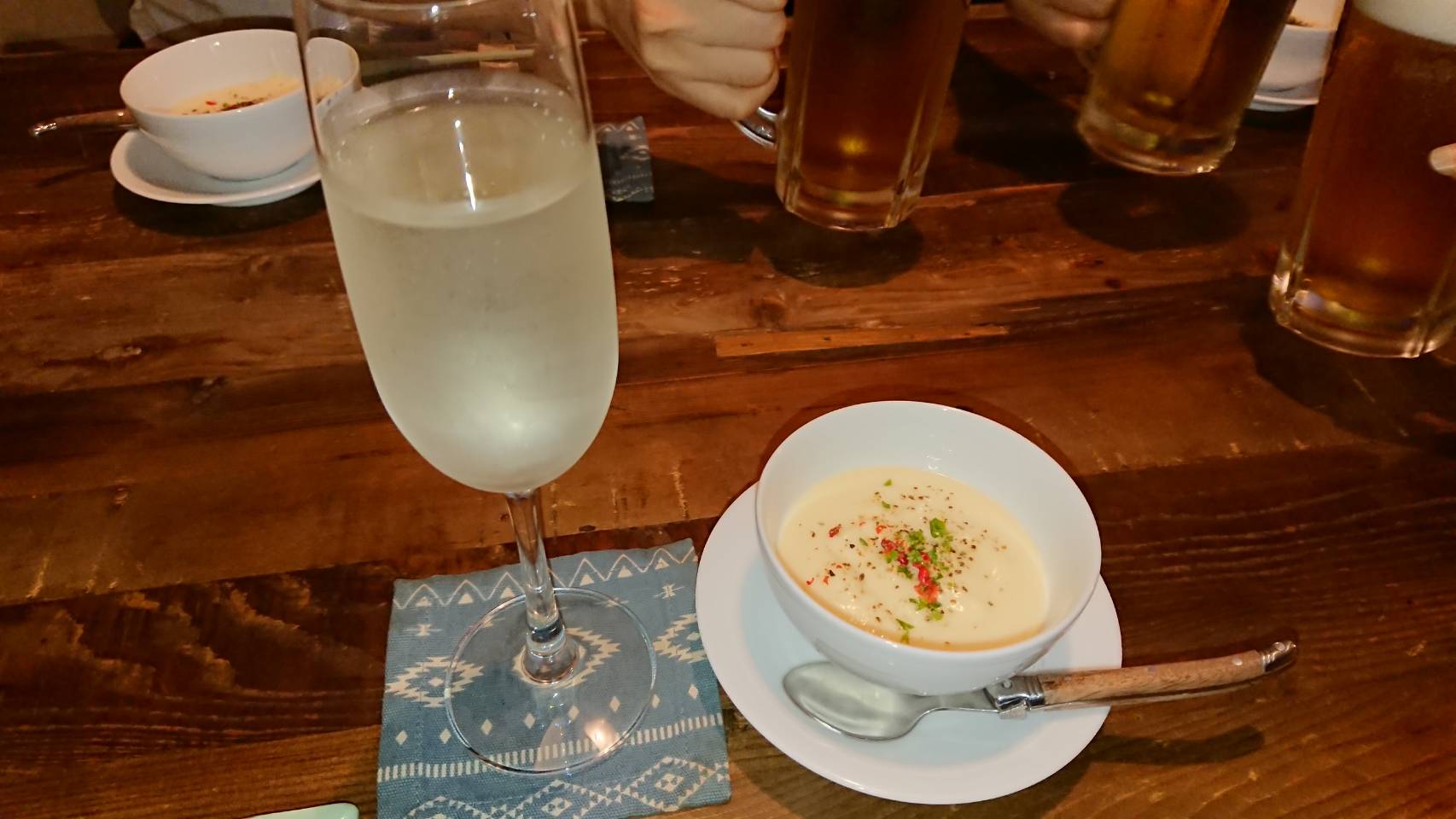 この日は事前に予約をして、夕方6時の開店と同時に伺いましたが、たちどころに数組のお客様で席が埋まってしまい、予約しておいて良かった~と胸をなでおろしました。さつまさんの人気の高さを感じます。先ずは、私とみどりさんは、冷えた生ビールで、孝之さんは一杯目から日本酒で乾杯。そしてお通しに出てきた『ビシソワーズ』を頂きながら、おすすめメニューの中からじっくりとお酒と料理を選ぶことにしました。