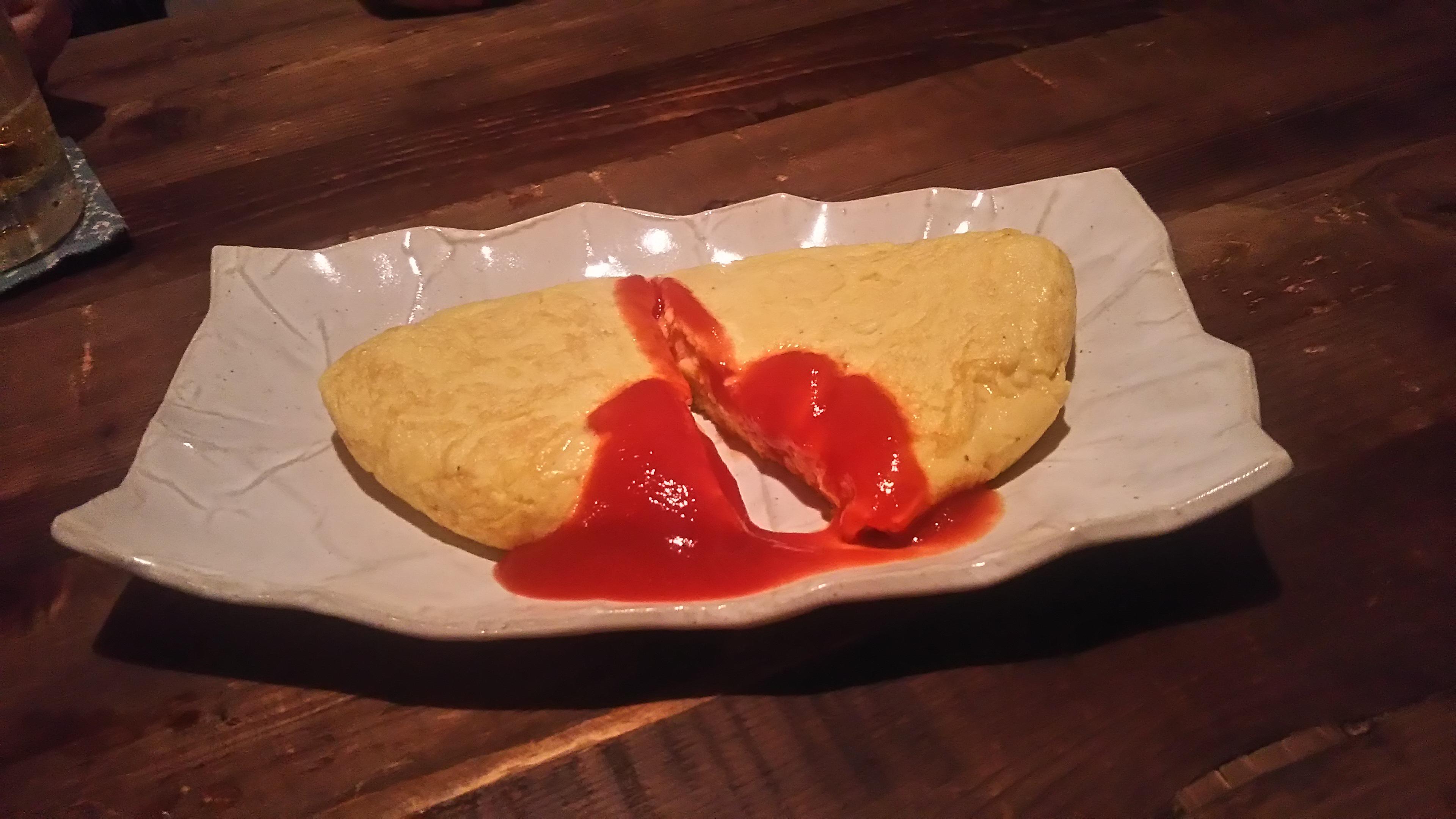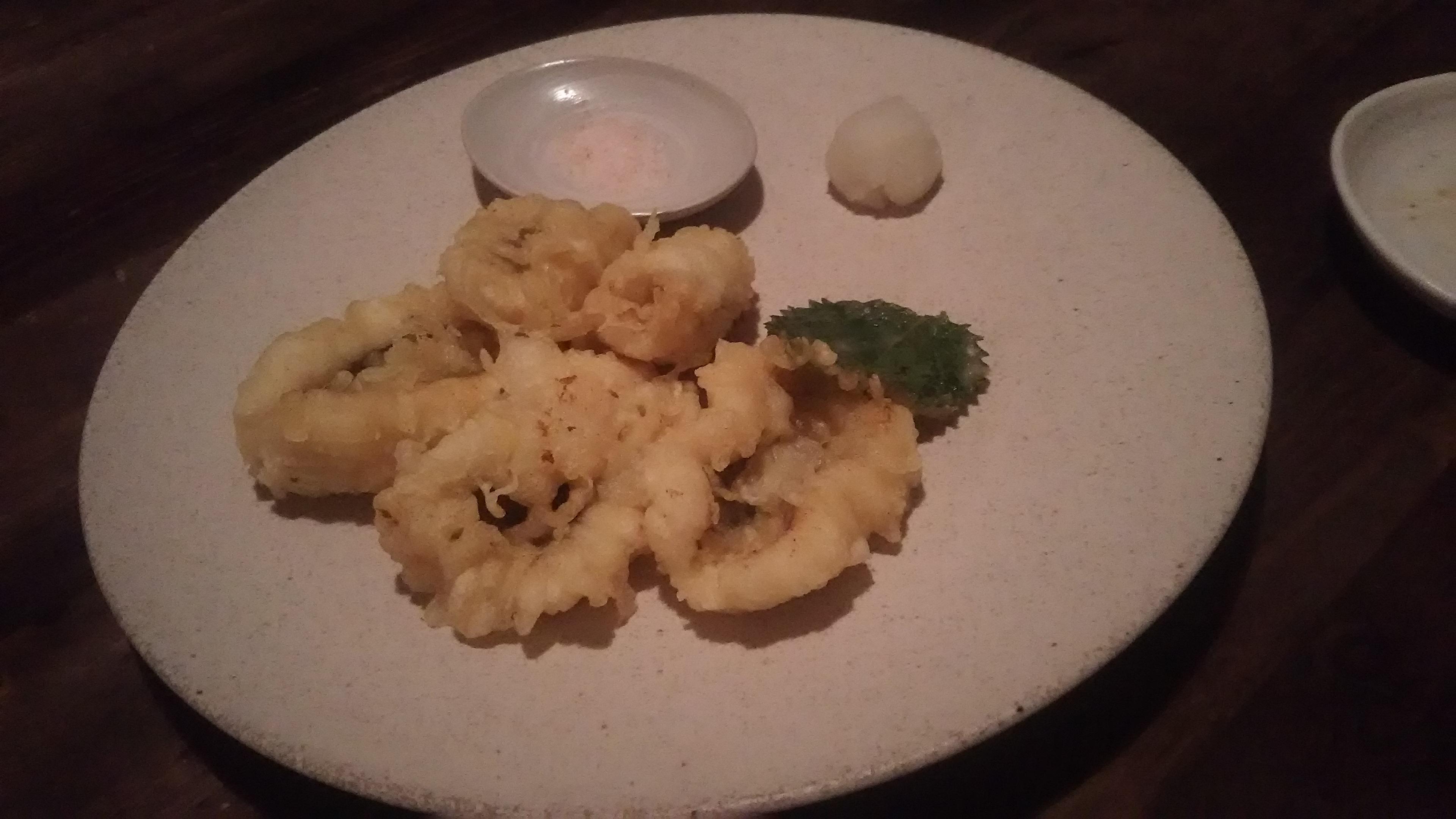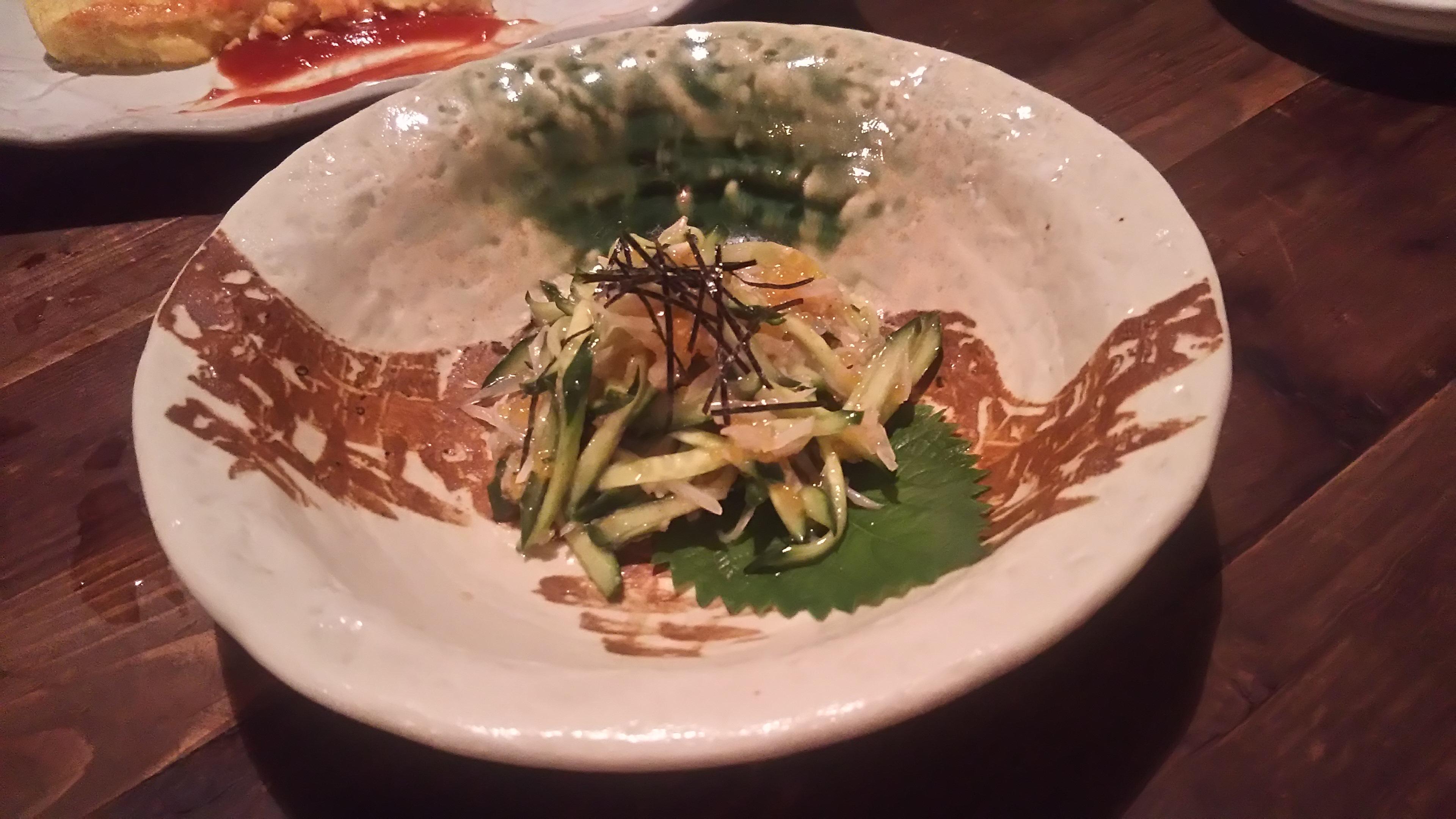 今回は、スッキリとした飲み口の白ワインを楽しもう!という事で、最初の一本目は『ソレイユ・グルペットブラン』を注文しました。グレープフルーツのような爽やかな香りとキリッと引き締まった酸味が、気分を爽快にしてくれます。『鱧のてんぷら』との相性も抜群でした。天つゆで食べるのもいいですが、私は断然『塩派』ですね(笑)『玉ねぎのサラダ』や『きゅうりとクラゲの梅和え』、『トロトロチーズオムレツ』も美味しくいただきました。