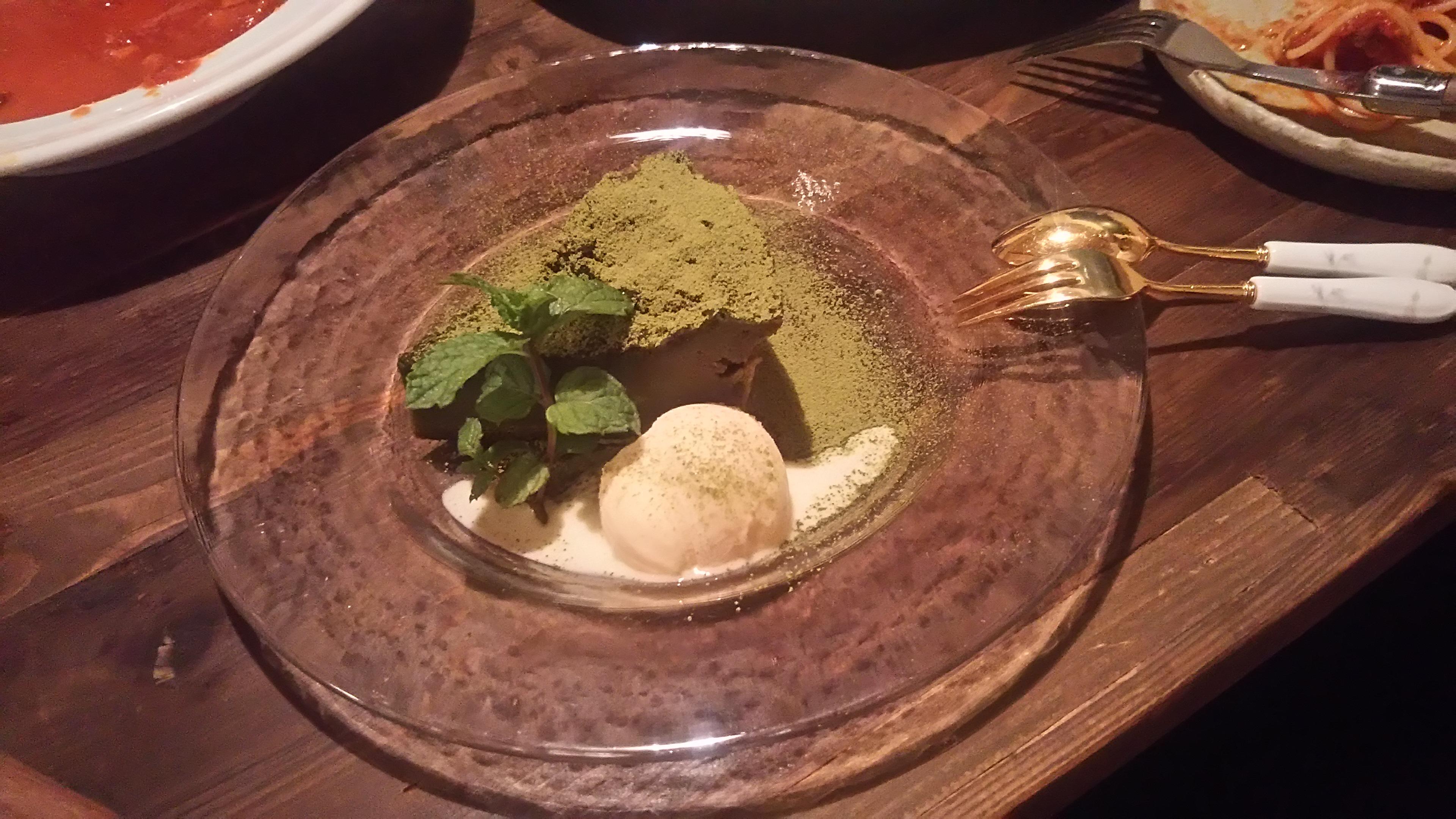そして、最後は甘いもので締めたいというみどりさんの希望で、『抹茶のケーキ』を注文して大満足のひと時を過ごすことができました!ビールに始まって、ワインに日本酒、ウイスキー、好みのお酒と美味しい料理を頂きながら、家族揃って楽しい時間を過ごすことができました。