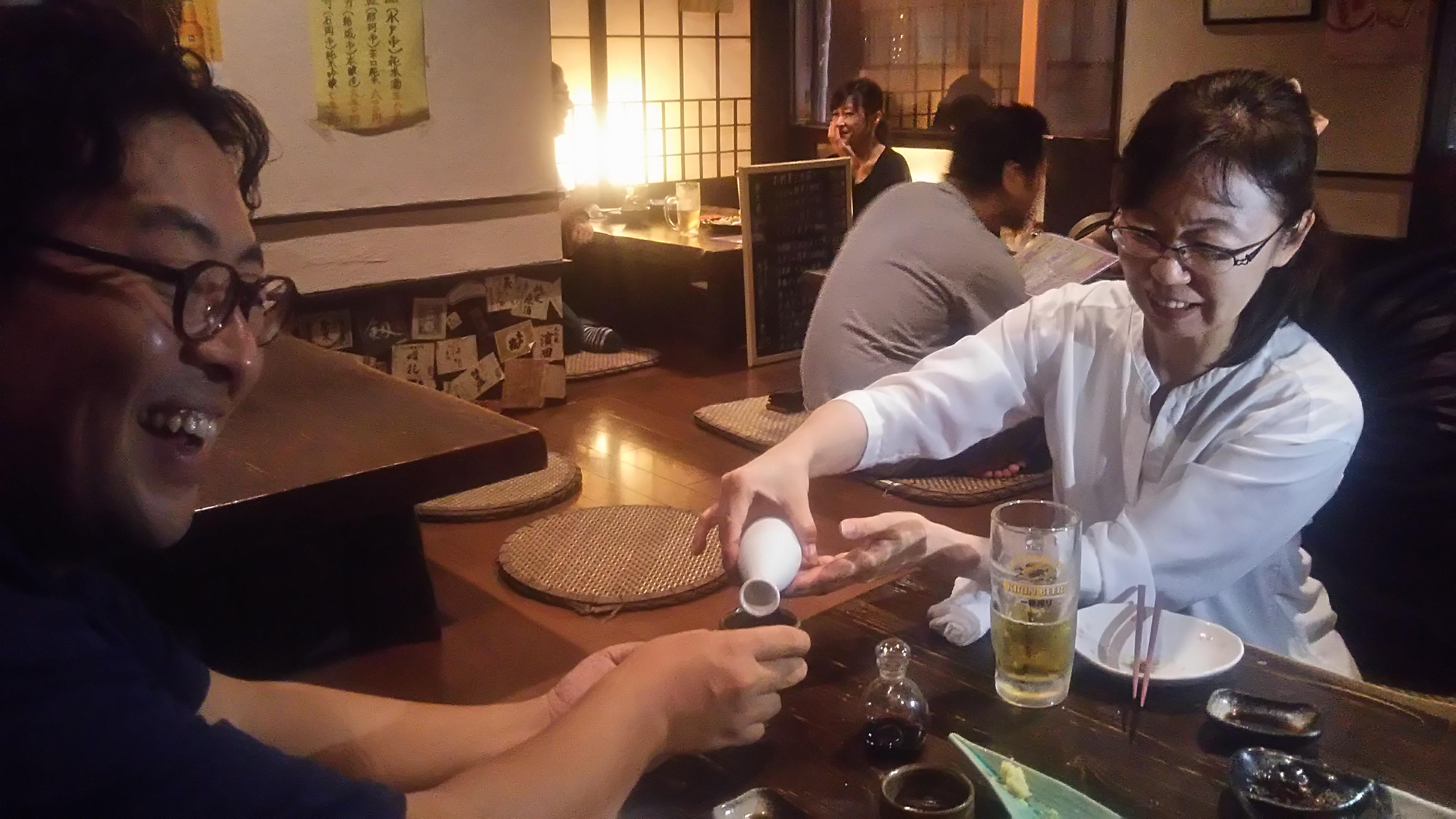 九州の佐賀県から来てくれた天吹酒造の佐藤さんと連れ立って、水戸駅前で評判の居酒屋『陽菜田(ひなた)』さんへお邪魔してきました!水戸駅北口から徒歩3分のビルの二階にあり、座敷には5つのテーブルと、こじんまりとしたカウンターのある、昔懐かしい雰囲気の店内です。明るく元気なママさんは、仕事帰りのサラリーマンをはじめ、様々な方からとても人気があります!