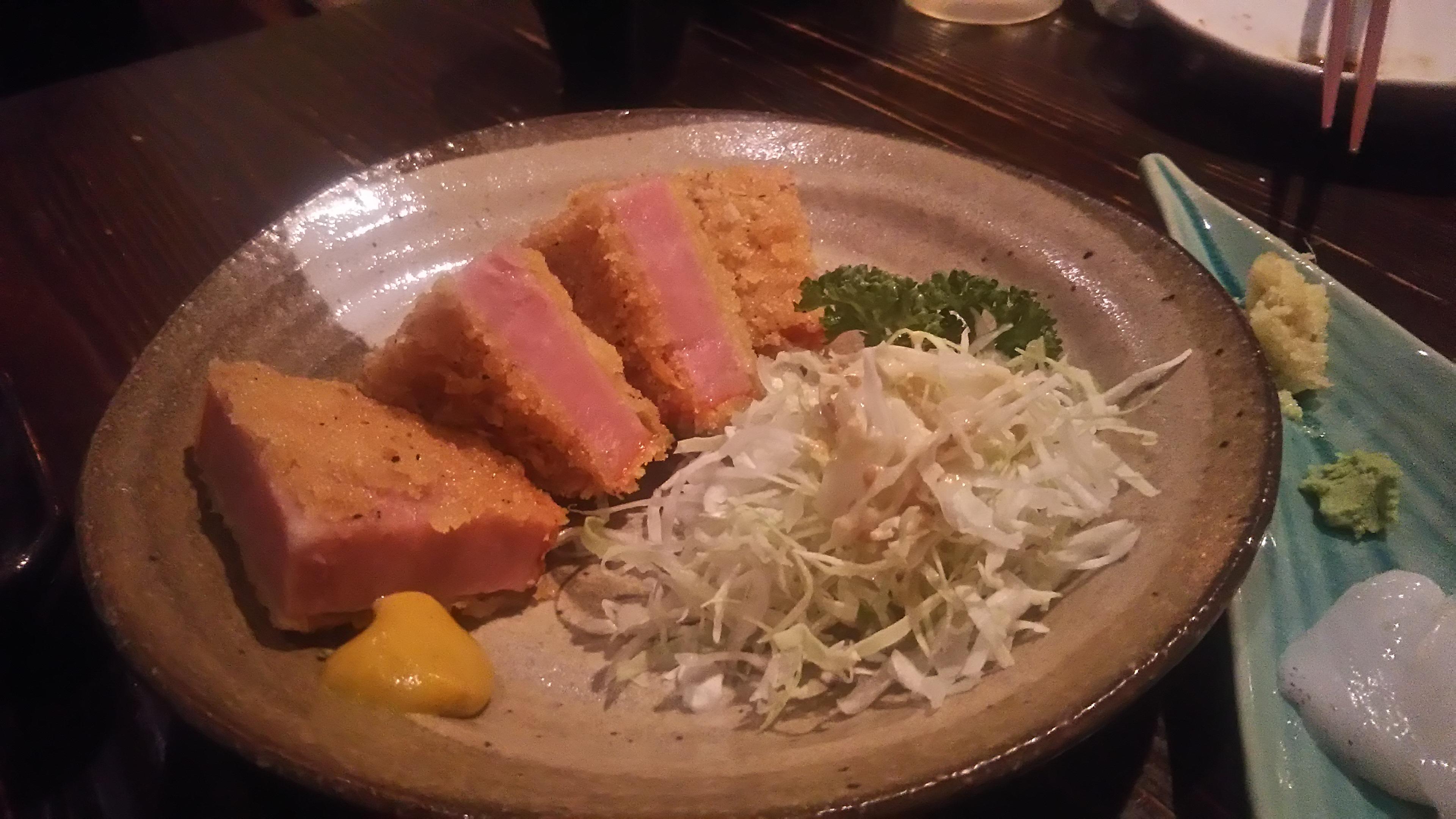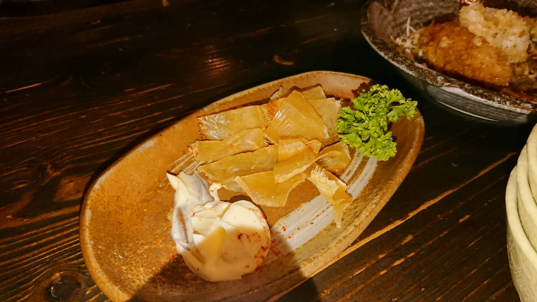 その後、日本酒に合わせて、定番メニューから、『炙りエイヒレ』と『揚げ出し豆腐』を注文しました!また、お店で一番人気の『五穀味鶏のからあげ』と、肉厚の『ハムカツ』もいただくことにしました。ちょっと頼み過ぎてしまったかなぁ~?とも思いましたが、美味しいお酒と楽しい会話も手伝って、すべてペロリと完食してしまいました(笑)