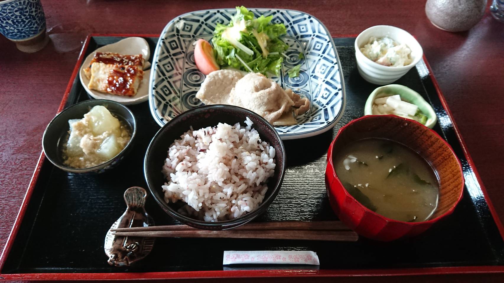 ランチメニューは一種類だけで、この日は五穀米と土地の野菜を使った田舎のおばあちゃんちで出てくるようなものばかりです。桑村さんと初めて会ったのは今から15年前にワインメーカーの営業マンの時で、その後実家の三ツ星食品さんに戻り、今回直接会うのは実に7年ぶりとなります。食事をしながら昔話に花が咲いたのは言うまでもありません。
