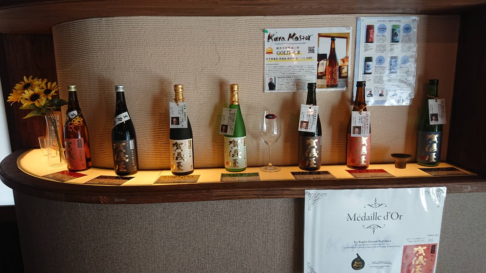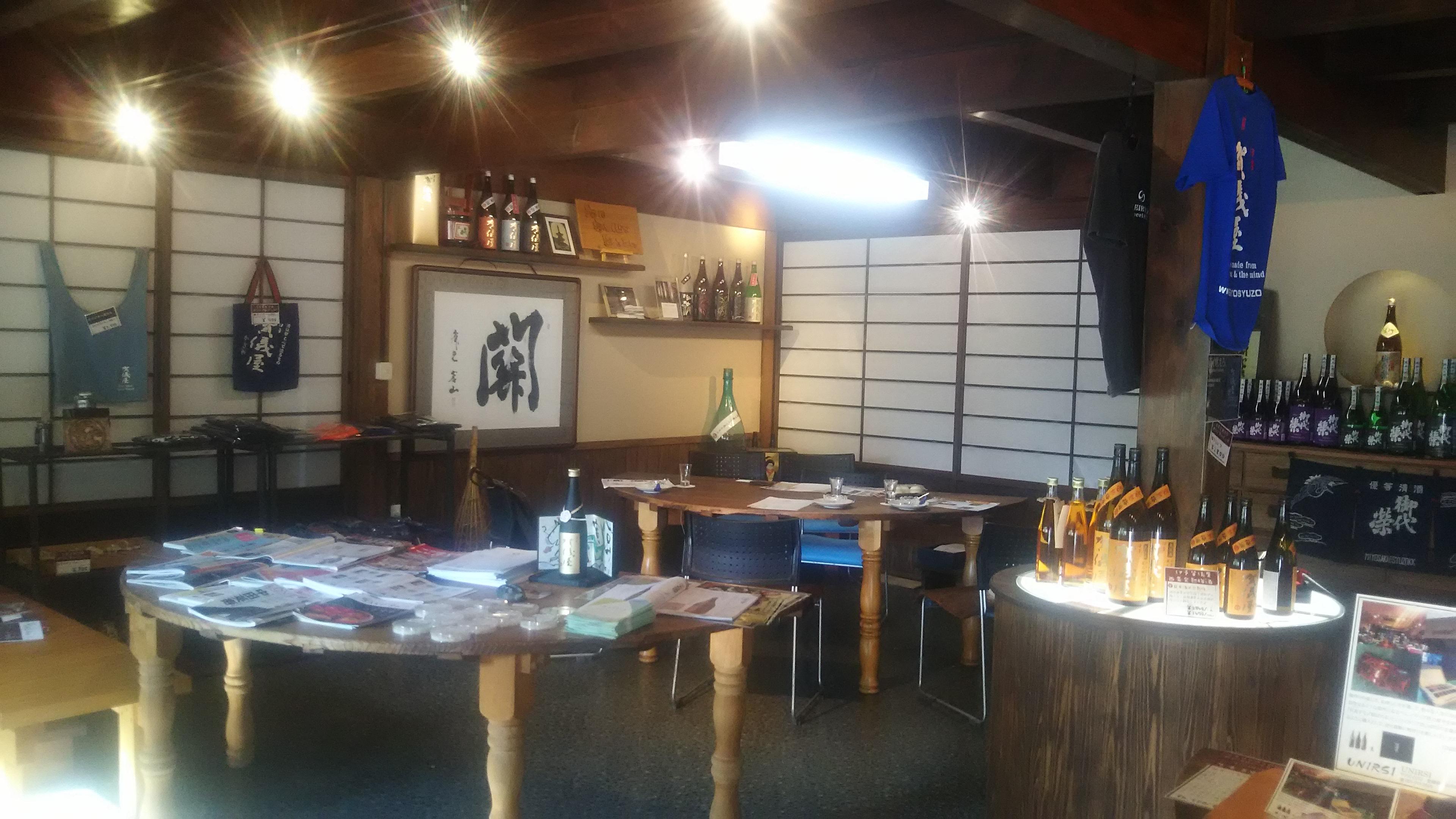 その後ギャラリーで、地元で販売されている『御代栄』と『賀儀屋』の代表銘柄を試飲させていただき、蔵元が目指す究極の食中酒の味わいが何となく分かったような気がしました!因みに、孝之さんは生酒タイプが気に入ったそうで、蔵元の敏孝さんと意気投合していました(笑)